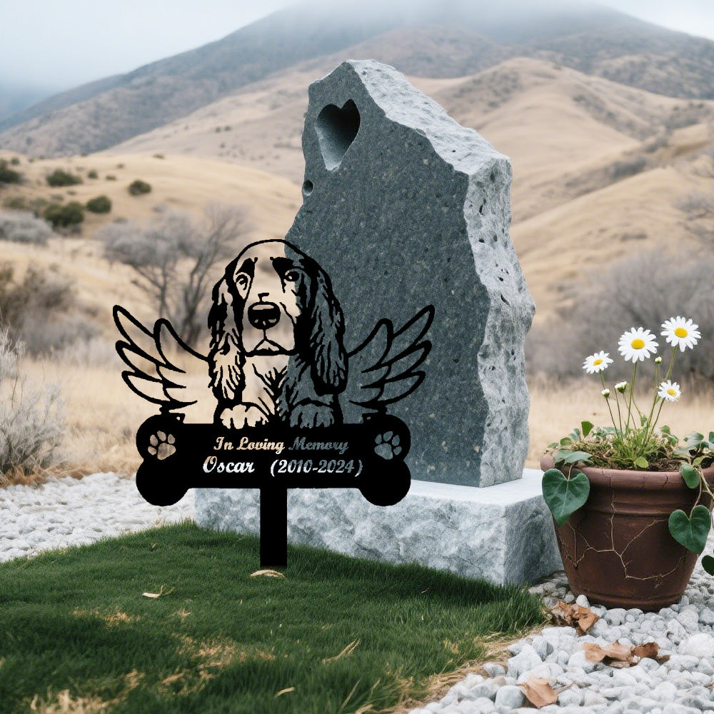 Filed Spaniel Individueller Gedenkpfahl mit Flügeln