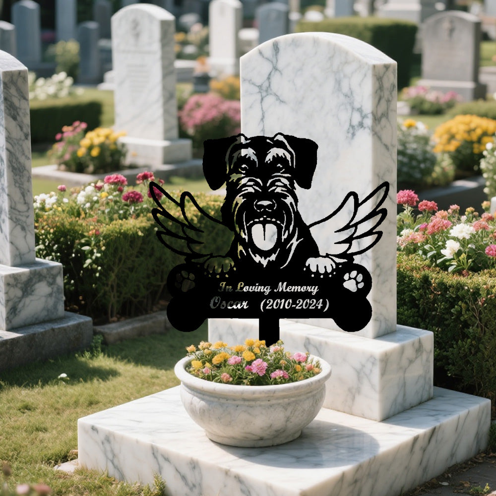 Riesenschnauzer Individueller Gedenkpfahl mit Flügeln