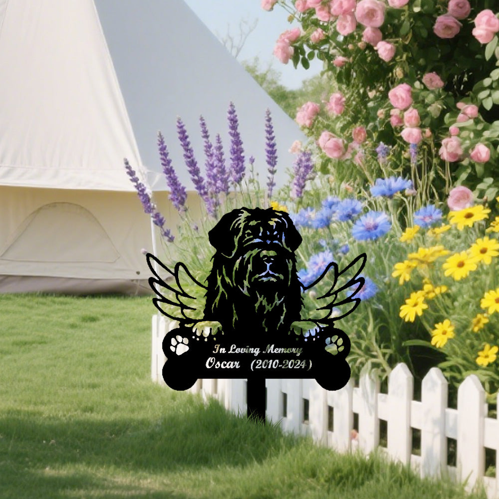 Russischer Schwarzer Terrier Individueller Gedenkpfahl mit Flügeln