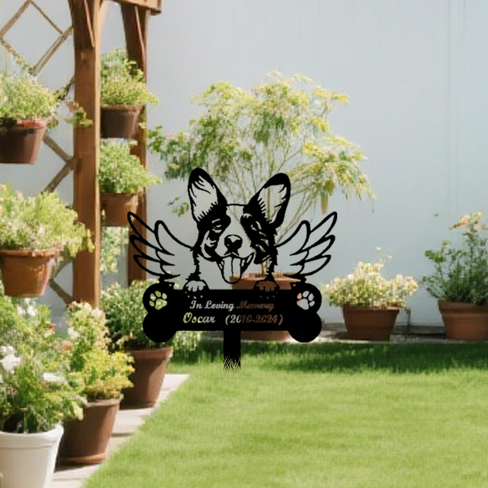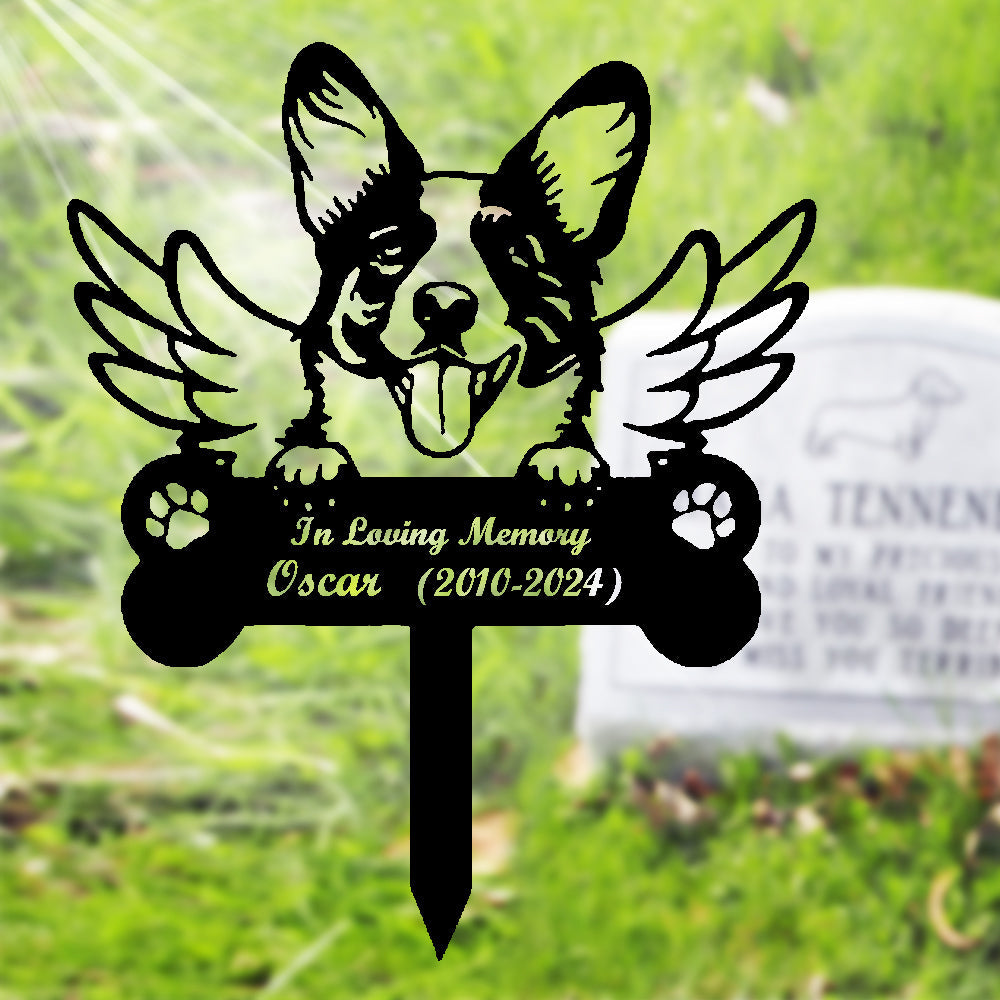 Welsh Corgi Cardigan Individueller Gedenkpfahl mit Flügeln
