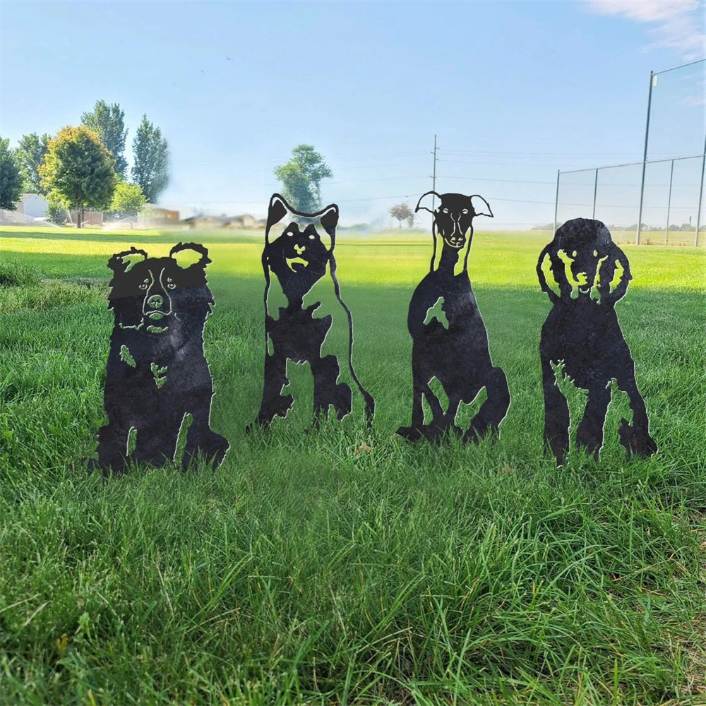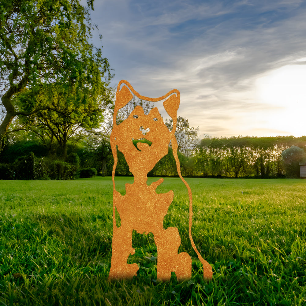 Hochwertige Metallkunst mit Tiersilhouette, die Ihrem Garten ganz einfach eine fröhliche Atmosphäre verleiht.