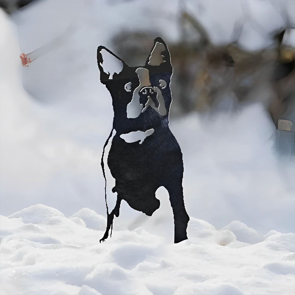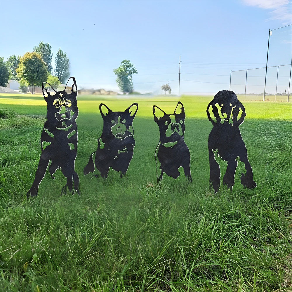 Hochwertige Metallkunst mit Tiersilhouette, die Ihrem Garten ganz einfach eine fröhliche Atmosphäre verleiht.