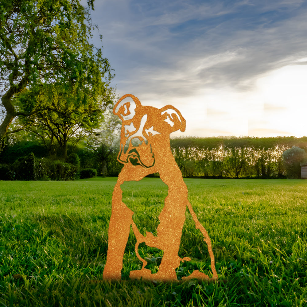 Hochwertige Metallkunst mit Tiersilhouette, die Ihrem Garten ganz einfach eine fröhliche Atmosphäre verleiht.