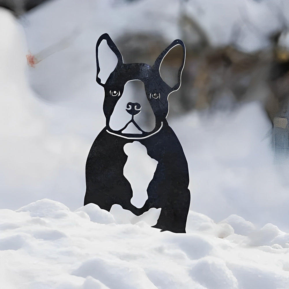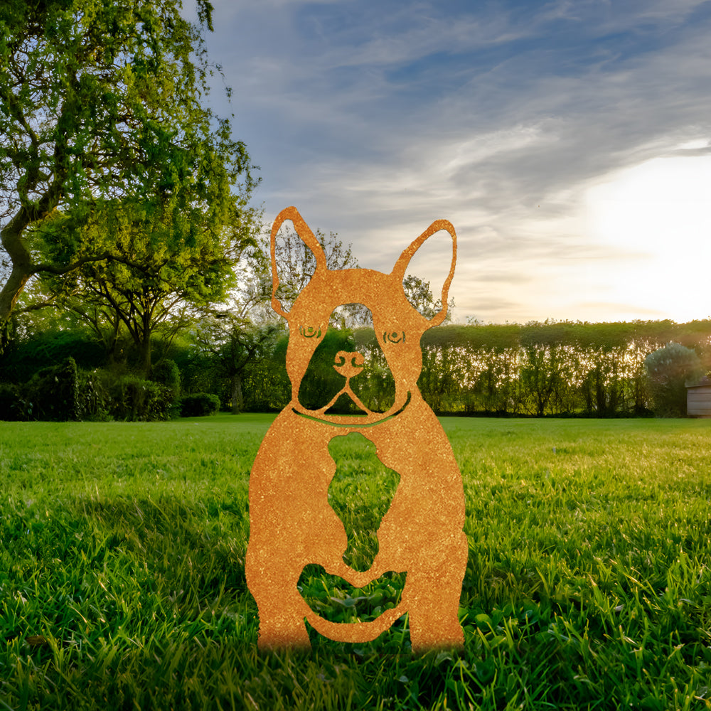 Hochwertige Metallkunst mit Tiersilhouette, die Ihrem Garten ganz einfach eine fröhliche Atmosphäre verleiht.
