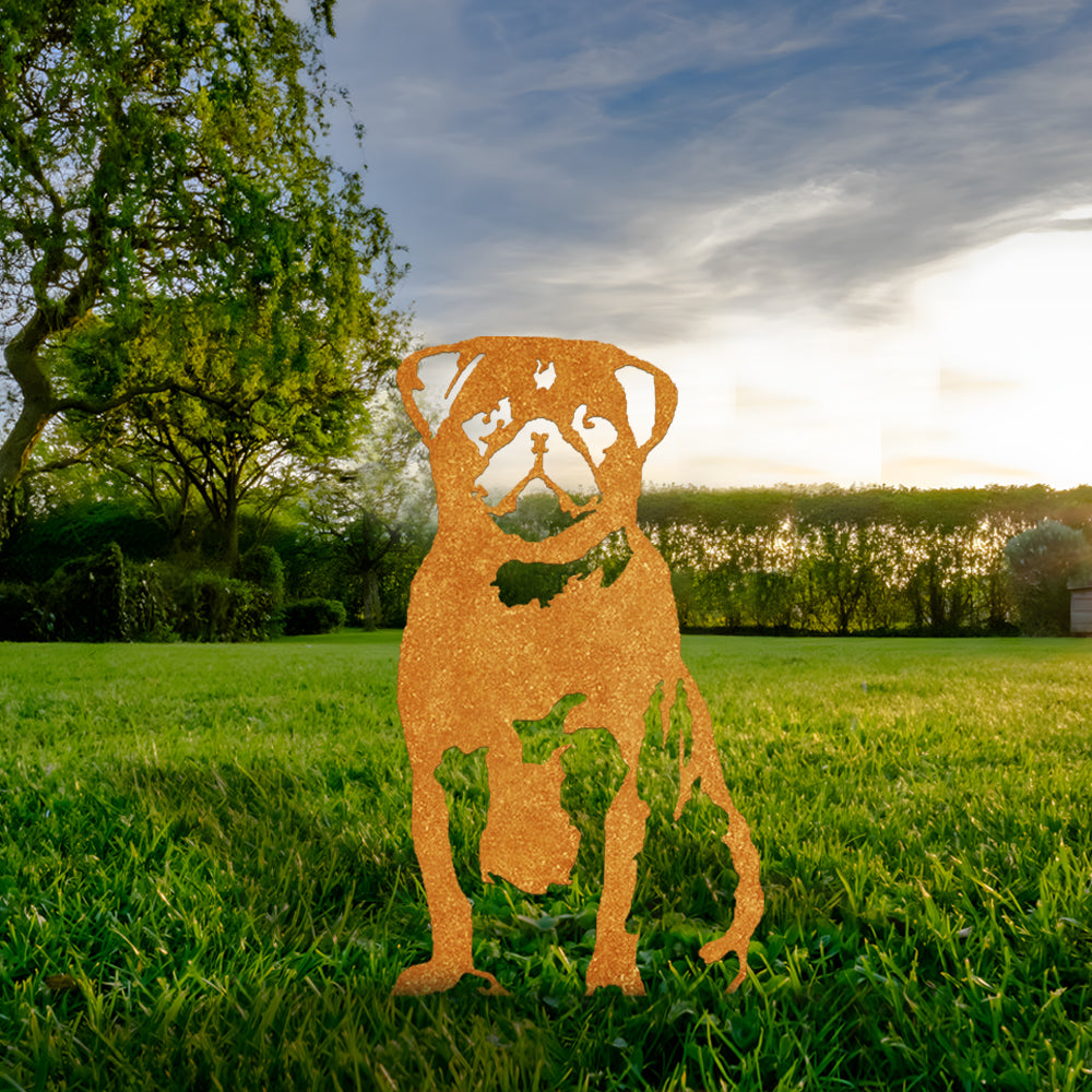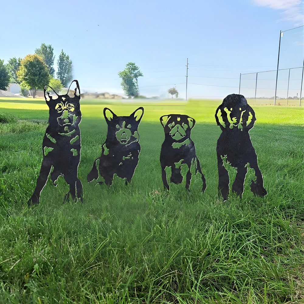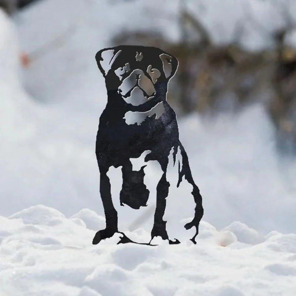Hochwertige Metallkunst mit Tiersilhouette, die Ihrem Garten ganz einfach eine fröhliche Atmosphäre verleiht.