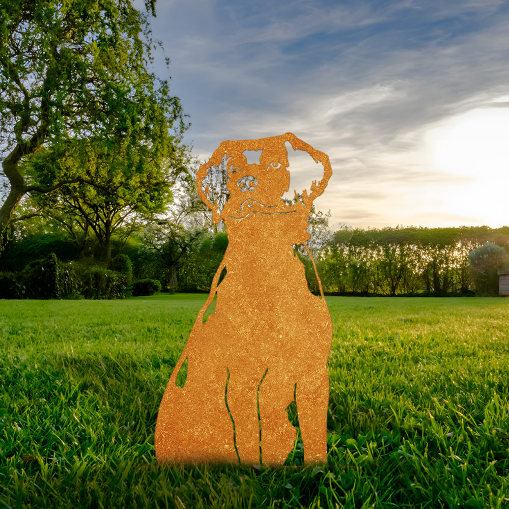 Hochwertige Metallkunst mit Tiersilhouette, die Ihrem Garten ganz einfach eine fröhliche Atmosphäre verleiht.