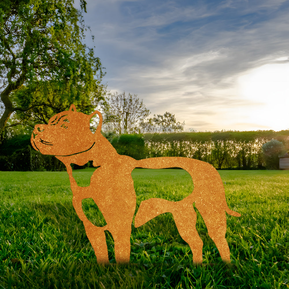 Hochwertige Metallkunst mit Tiersilhouette, die Ihrem Garten ganz einfach eine fröhliche Atmosphäre verleiht.
