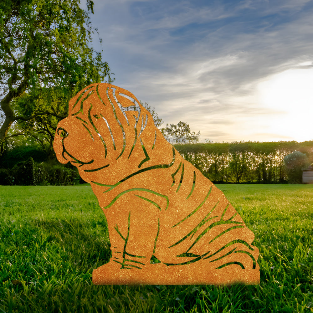 Hochwertige Metallkunst mit Tiersilhouette, die Ihrem Garten ganz einfach eine fröhliche Atmosphäre verleiht.