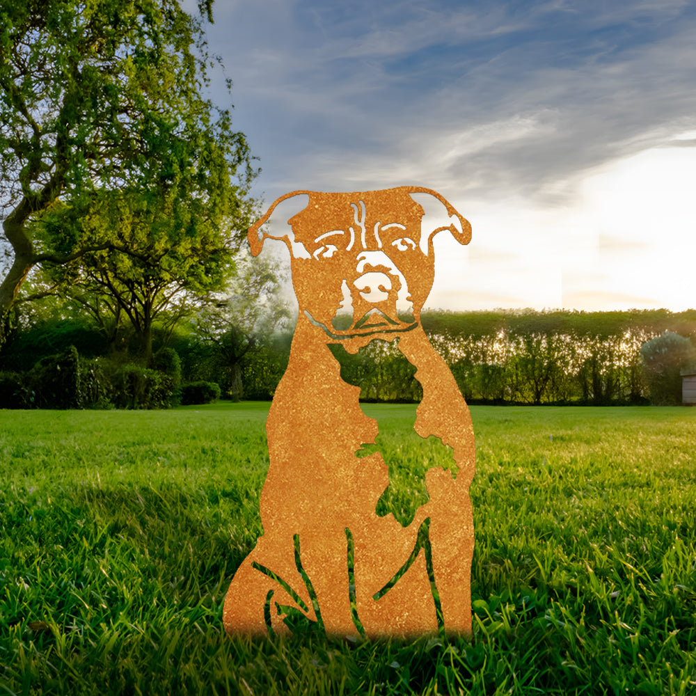 Hochwertige Metallkunst mit Tiersilhouette, die Ihrem Garten ganz einfach eine fröhliche Atmosphäre verleiht.