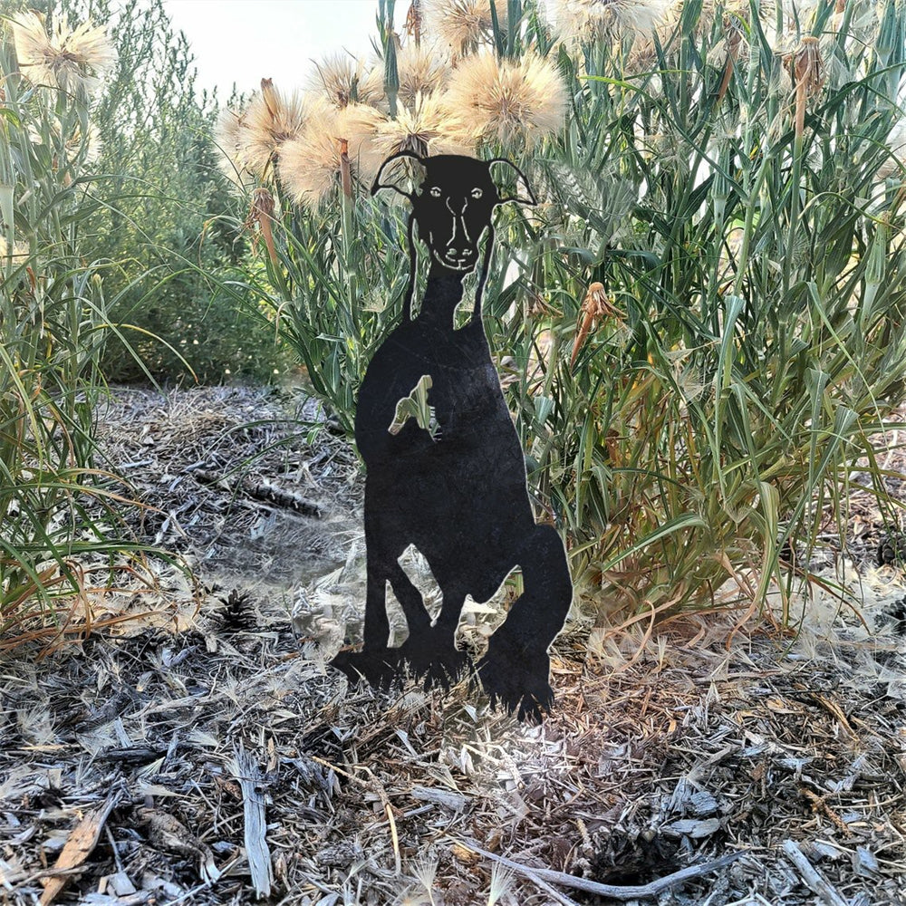 Hochwertige Metallkunst mit Tiersilhouette, die Ihrem Garten ganz einfach eine fröhliche Atmosphäre verleiht.