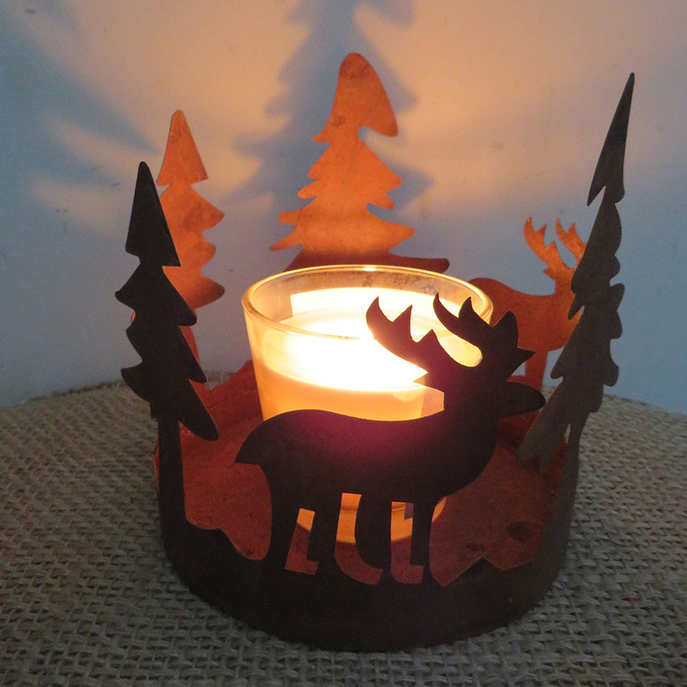 Elch und Kiefer Weihnachten Kerzenständer Metall Dekorativ