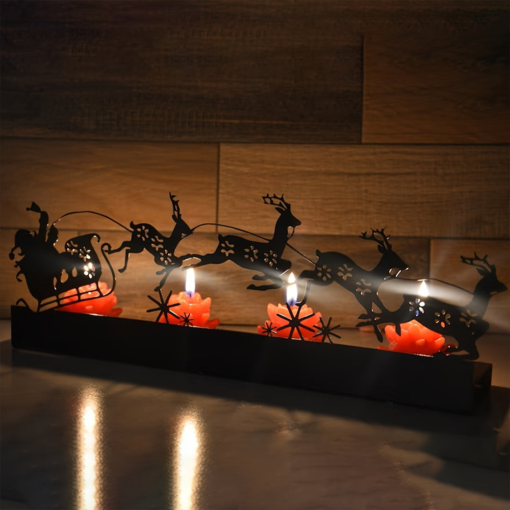 Weihnachtsmann und Elch Kerzenhalter Metall Dekorativ