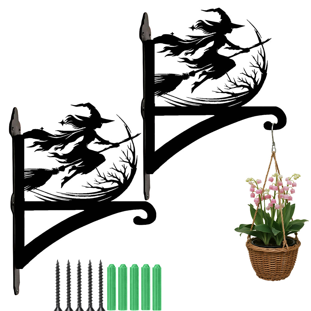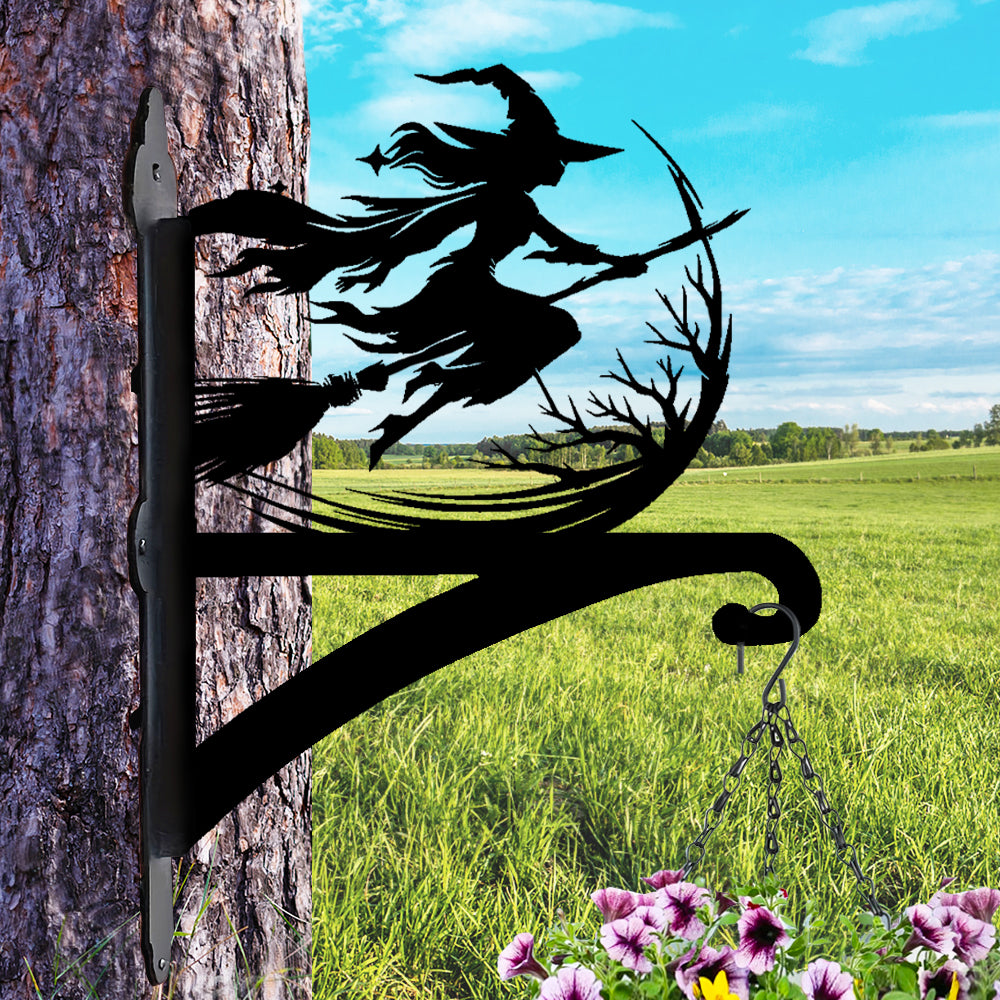 Hexe am Besenstiel Metall Hängebügel Pflanzenständer