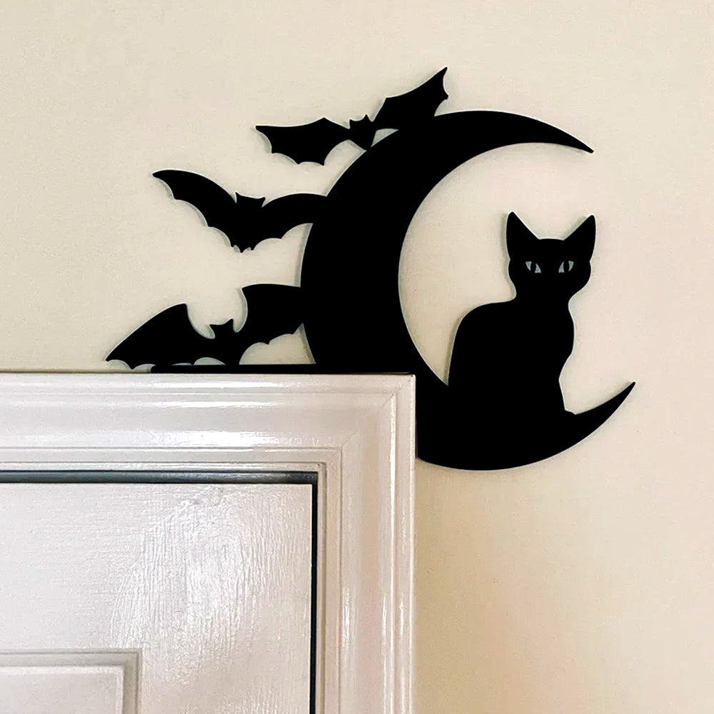 Halloween Mond Katze und Fledermaus Metall Tür Eckschild
