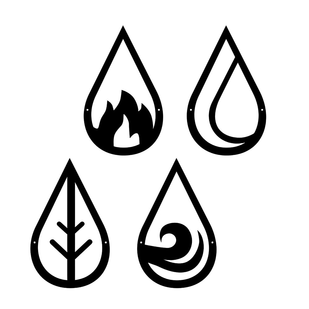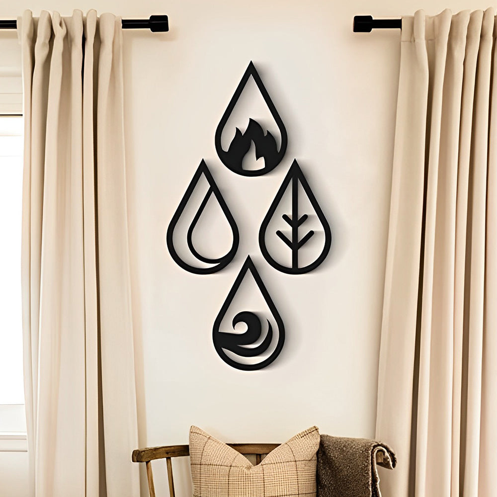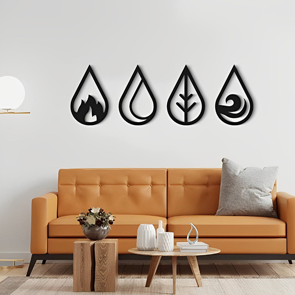 4 Stück Wassertropfen Typ 4 Elemente Metall Wandkunst