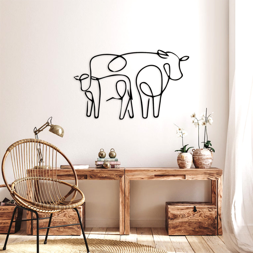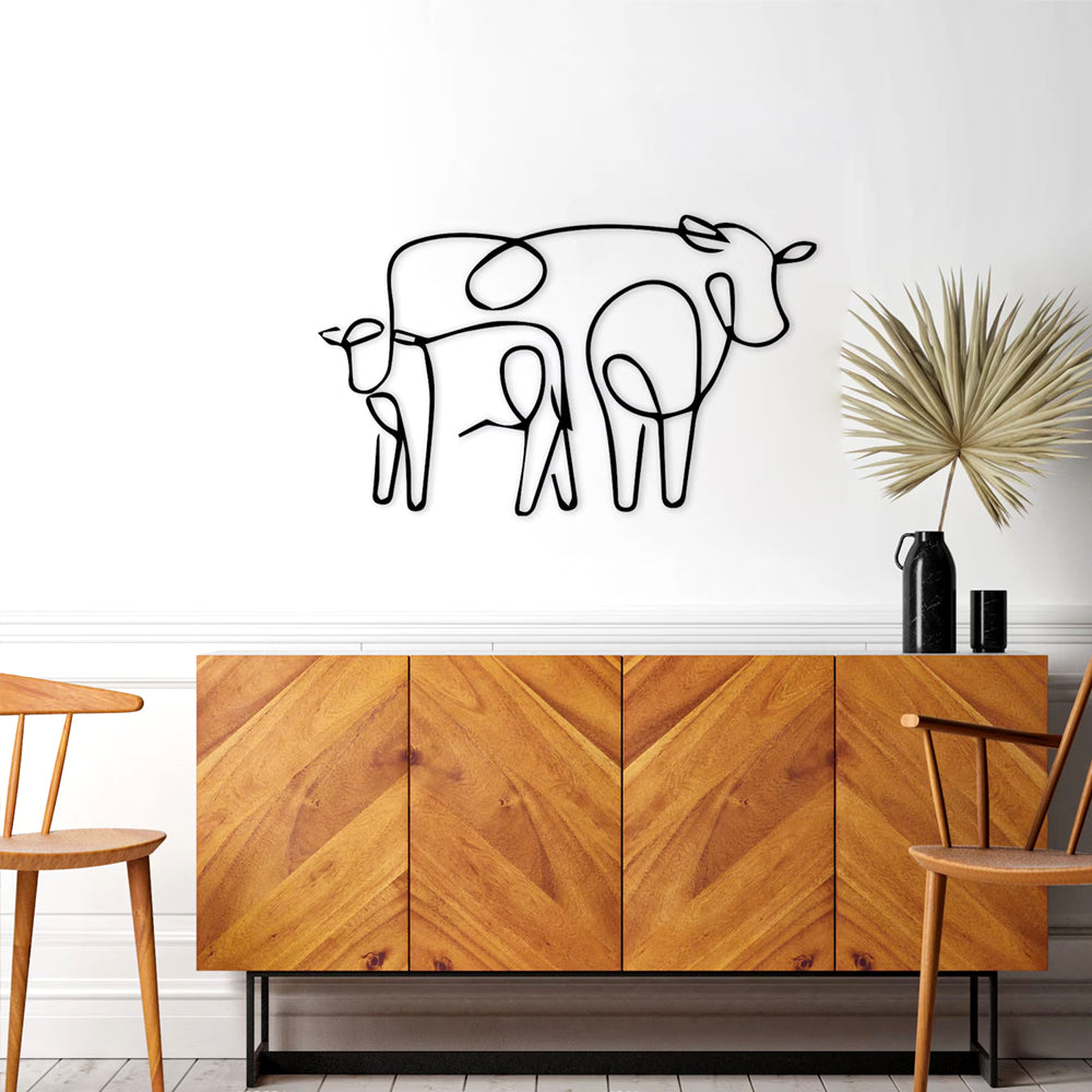 Baby Kuh und ihre Mutter Metall Wanddekoration