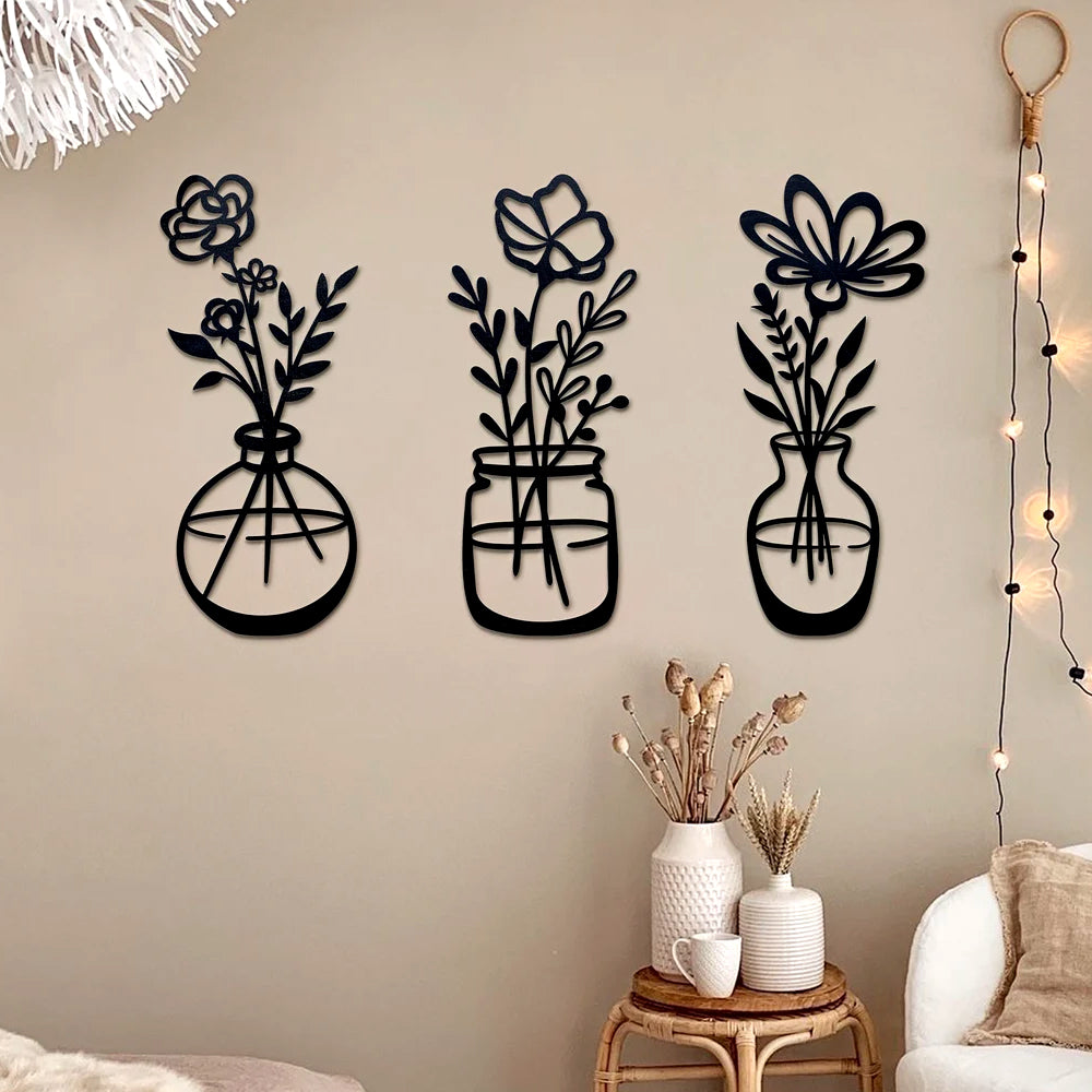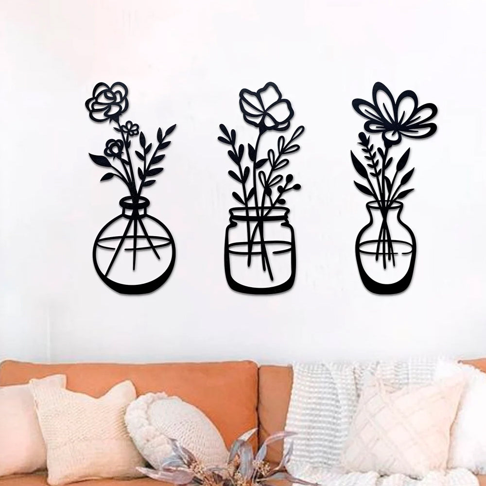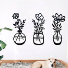 Blumenstrauß in drei Vasen Metall Wanddekoration