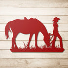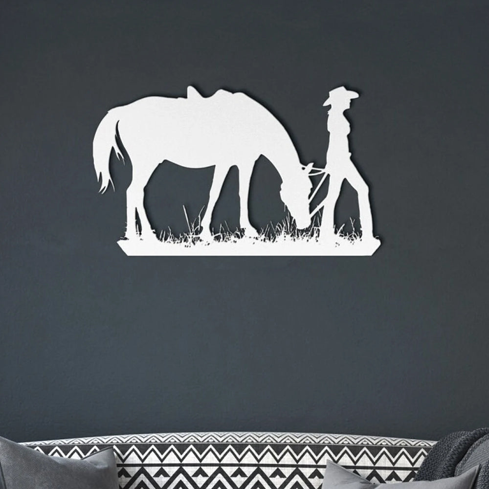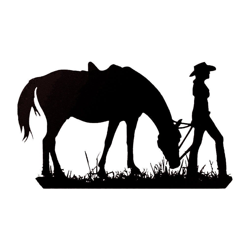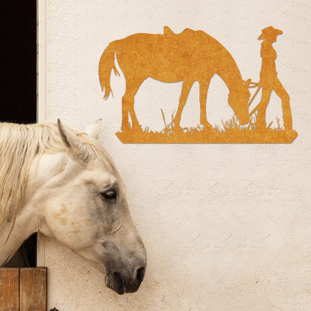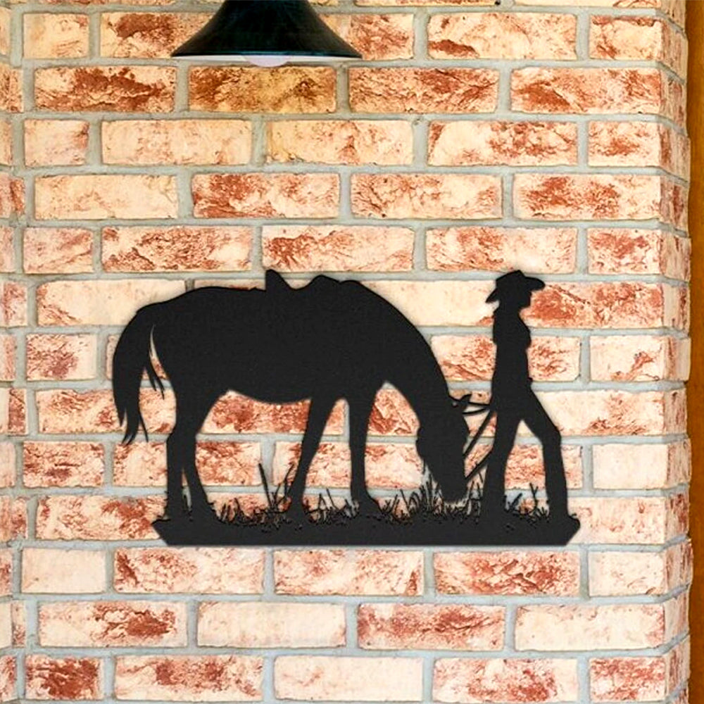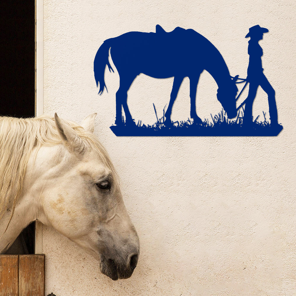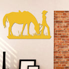 Cowgirl mit einem Pferd Metall Wandkunst