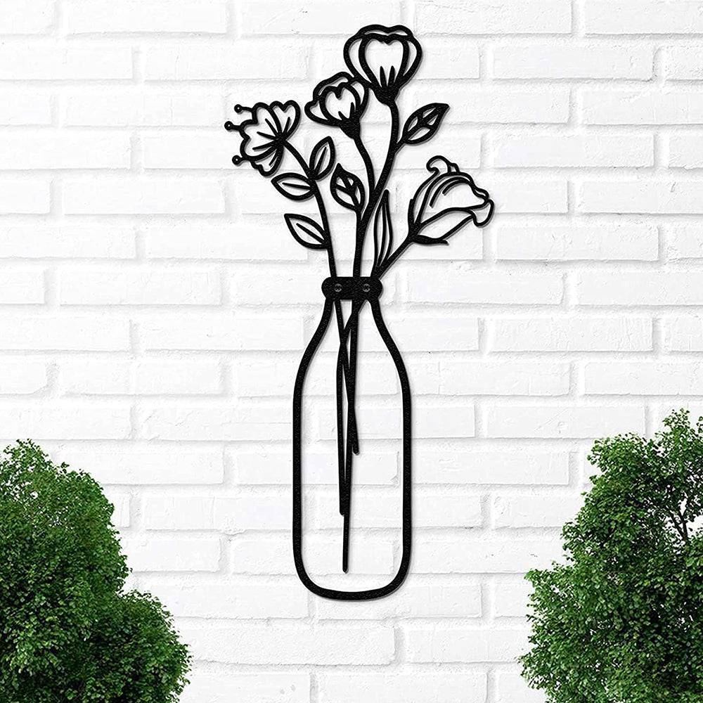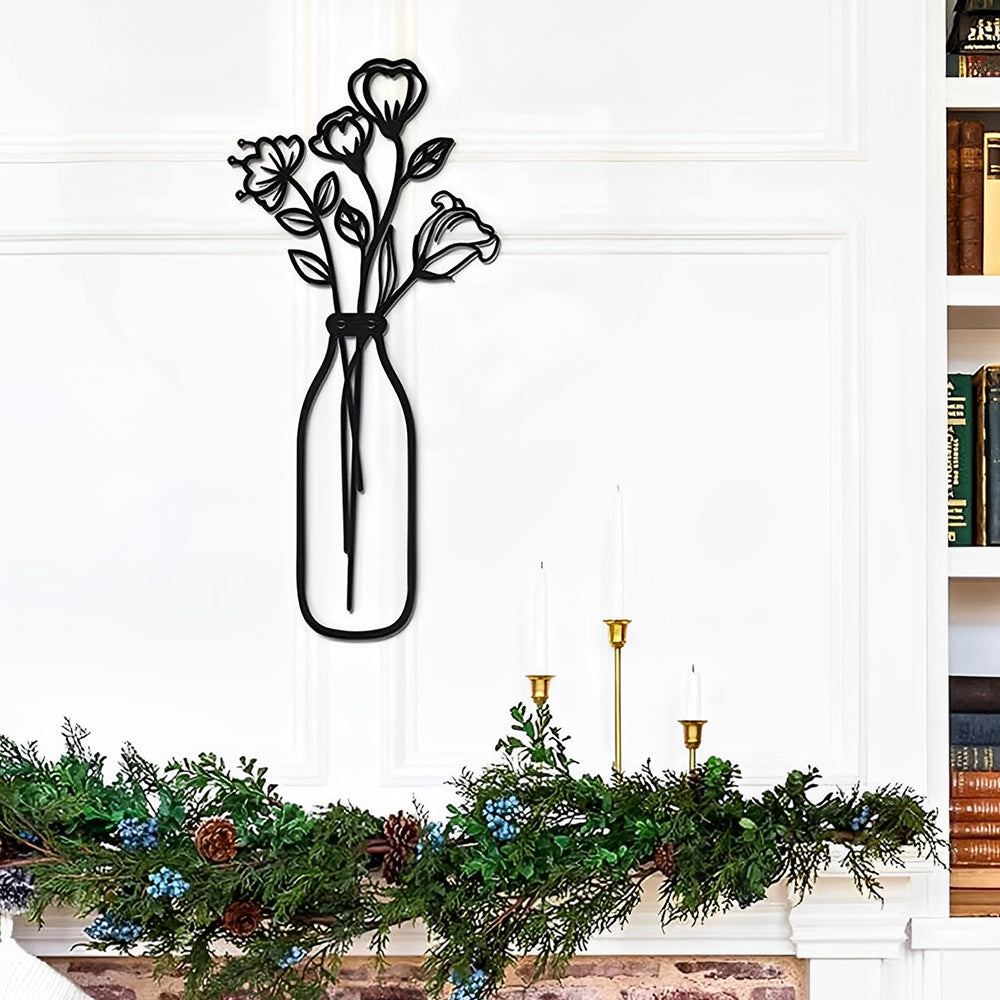 Einfache Blumenvase Silhouette Metall Wandkunst