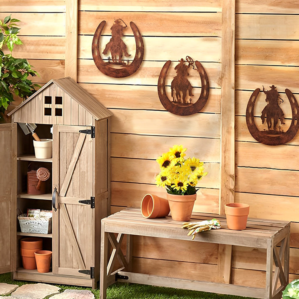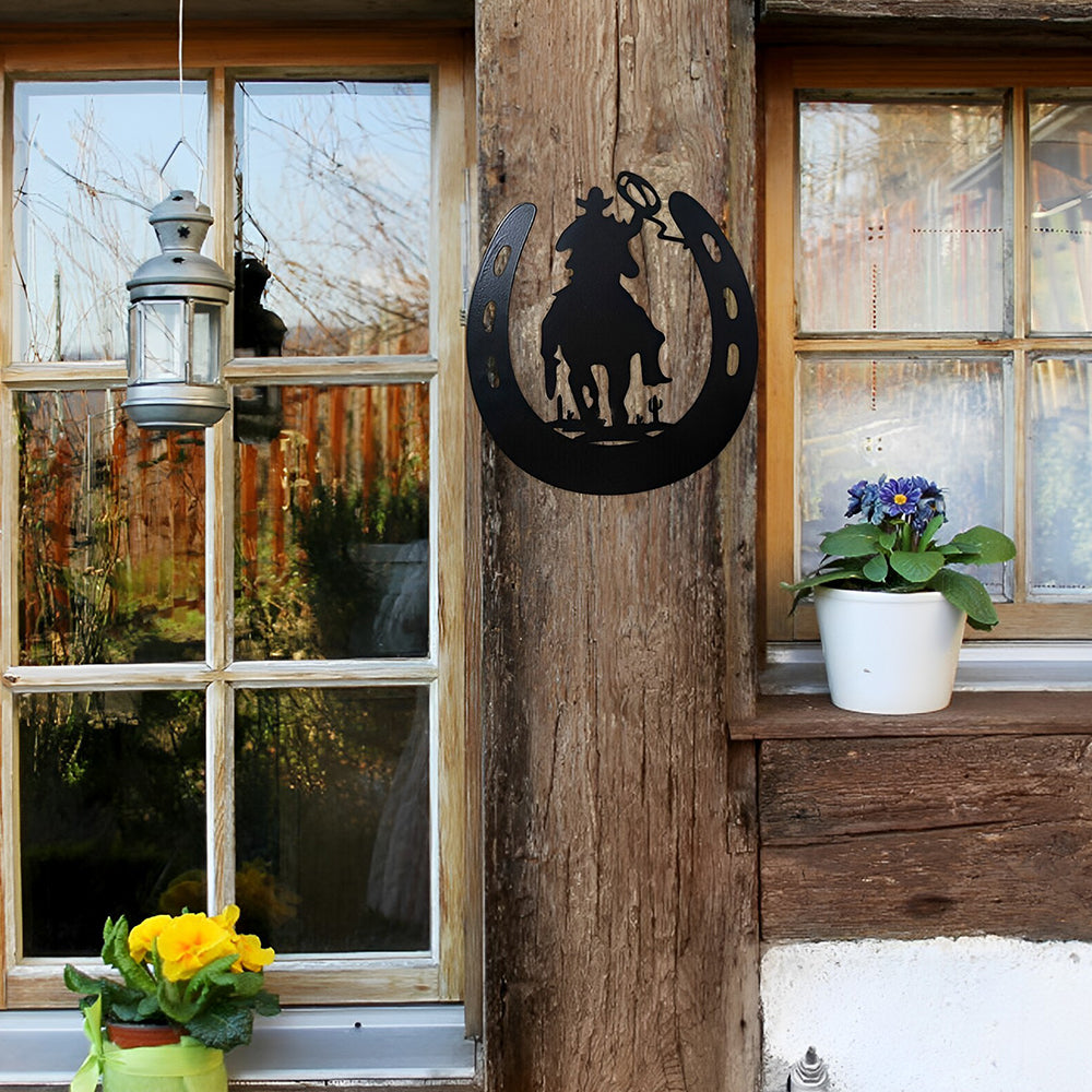 Hufeisen Cowboy Metall Wandkunst