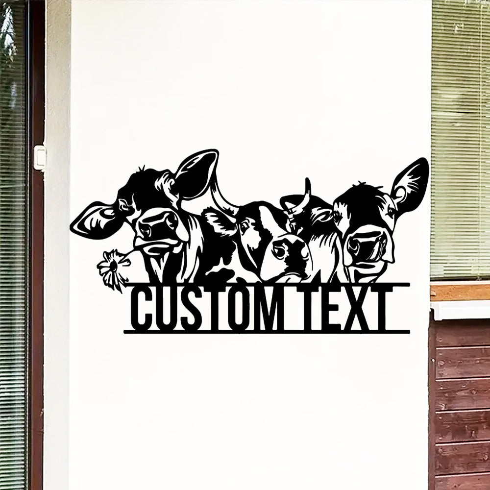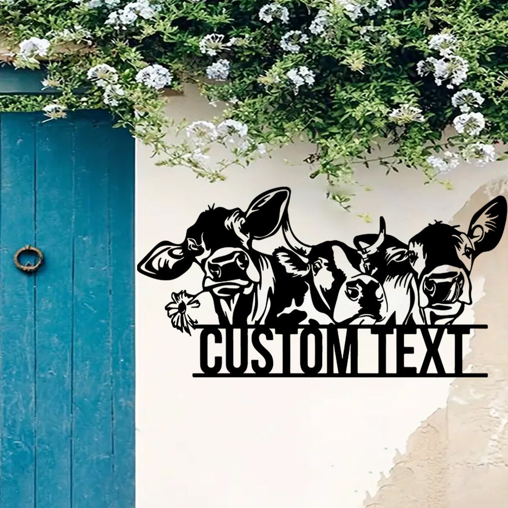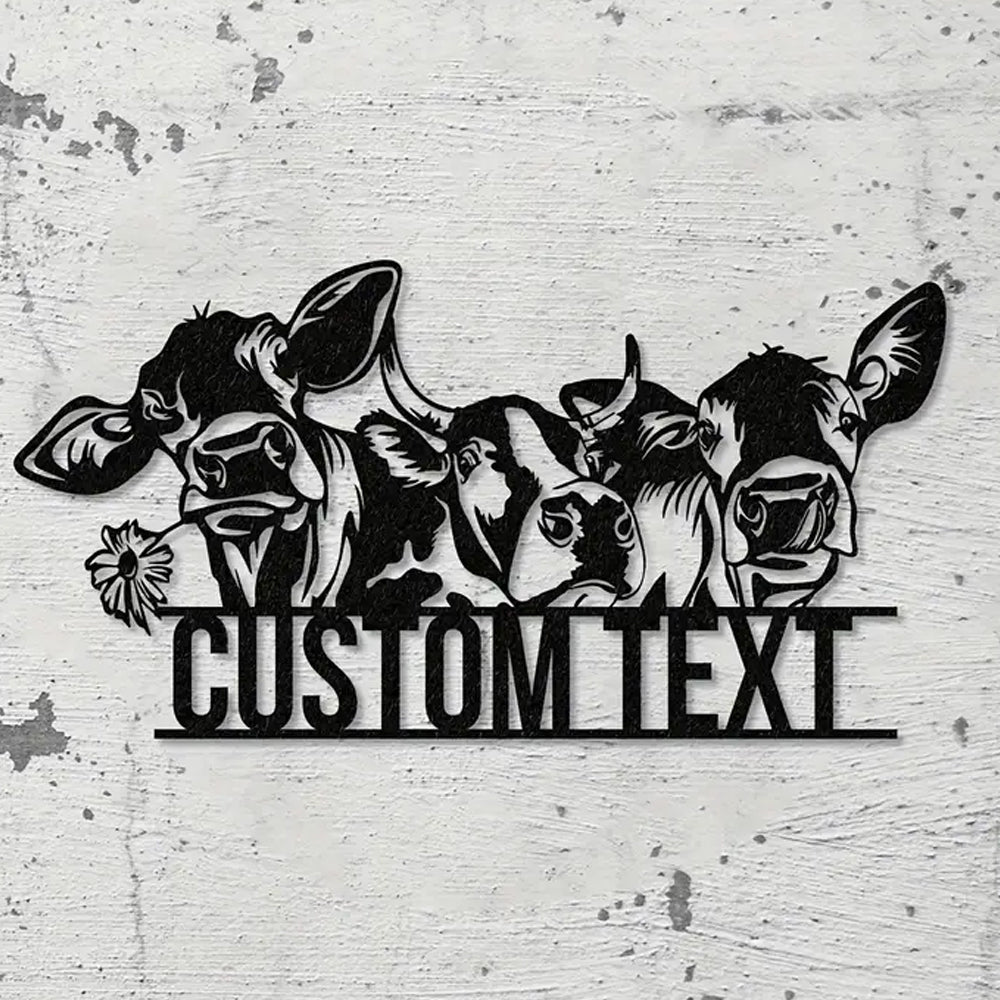 Individuelle Kuhköpfe und Gänseblümchen Metallschild Wanddekoration