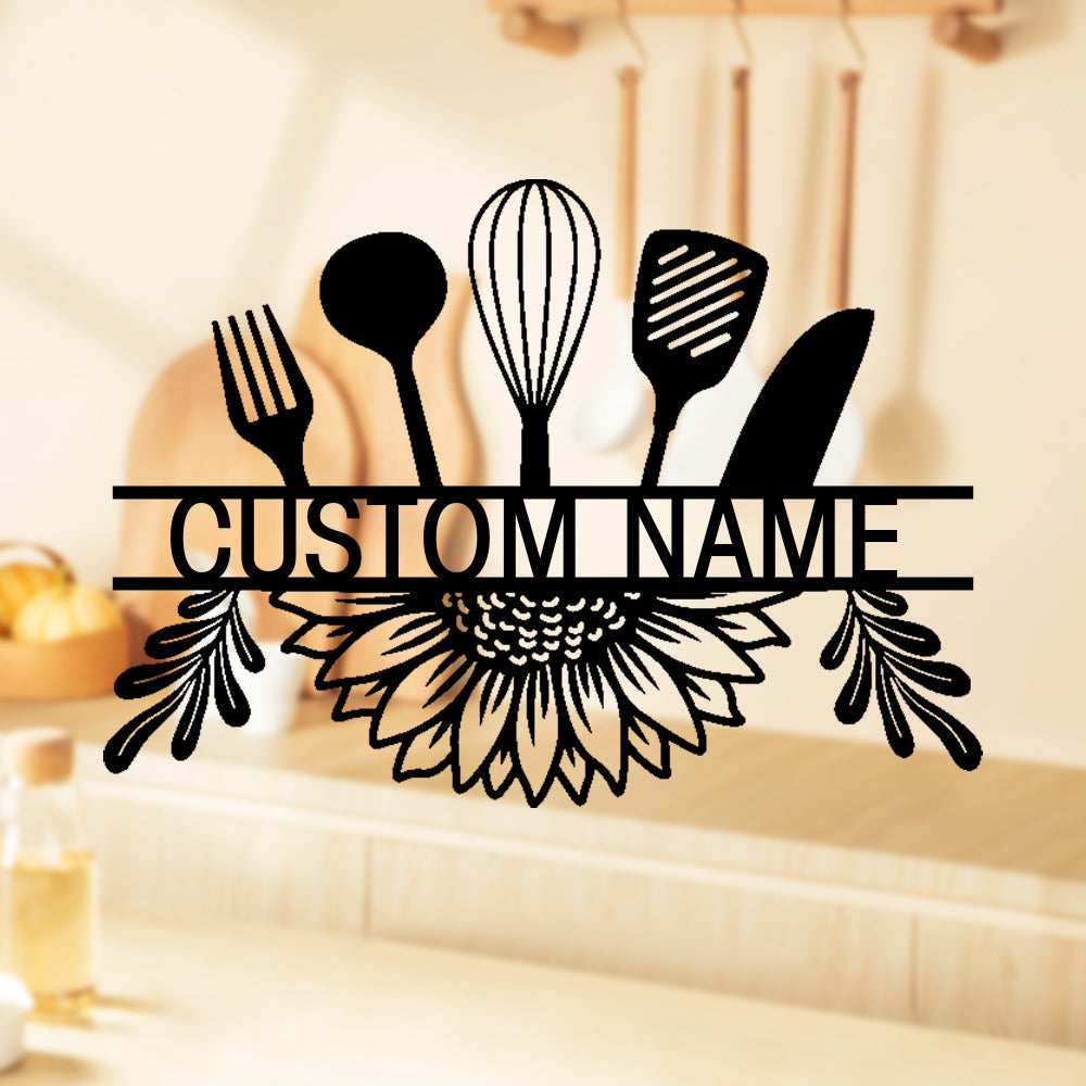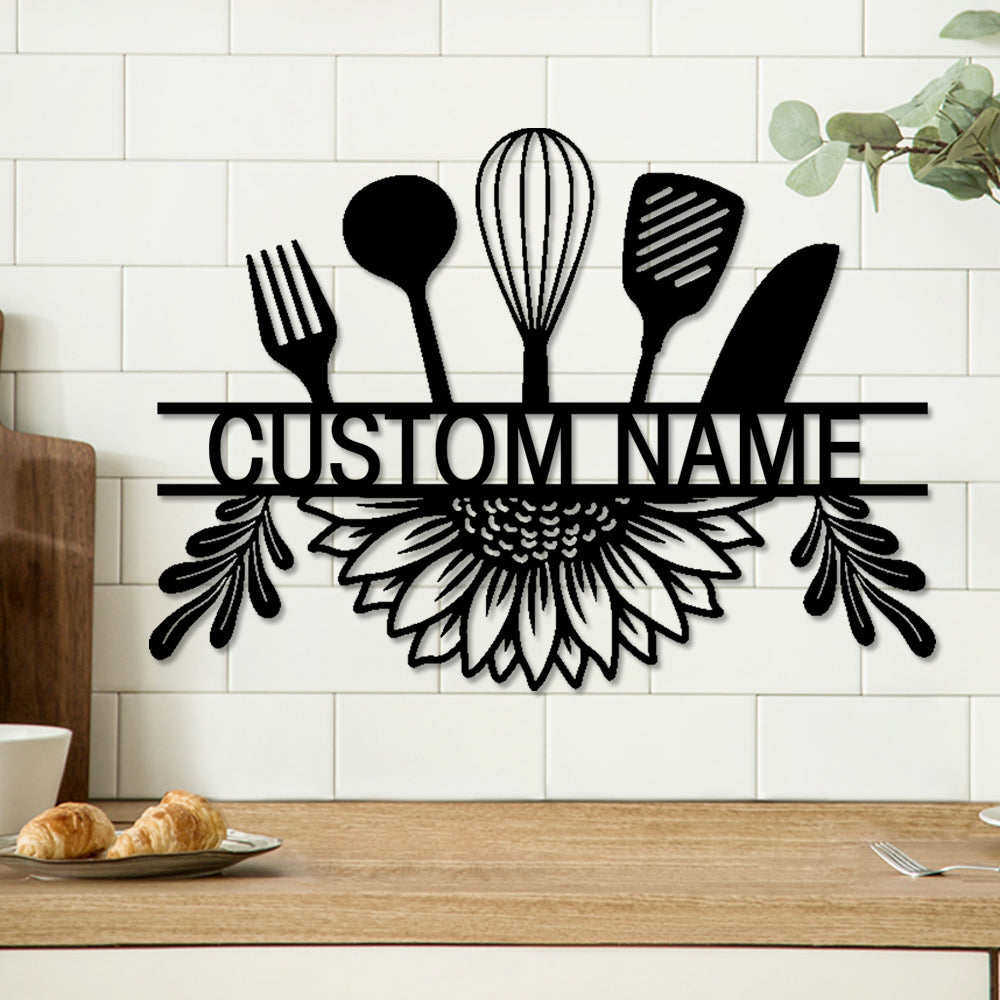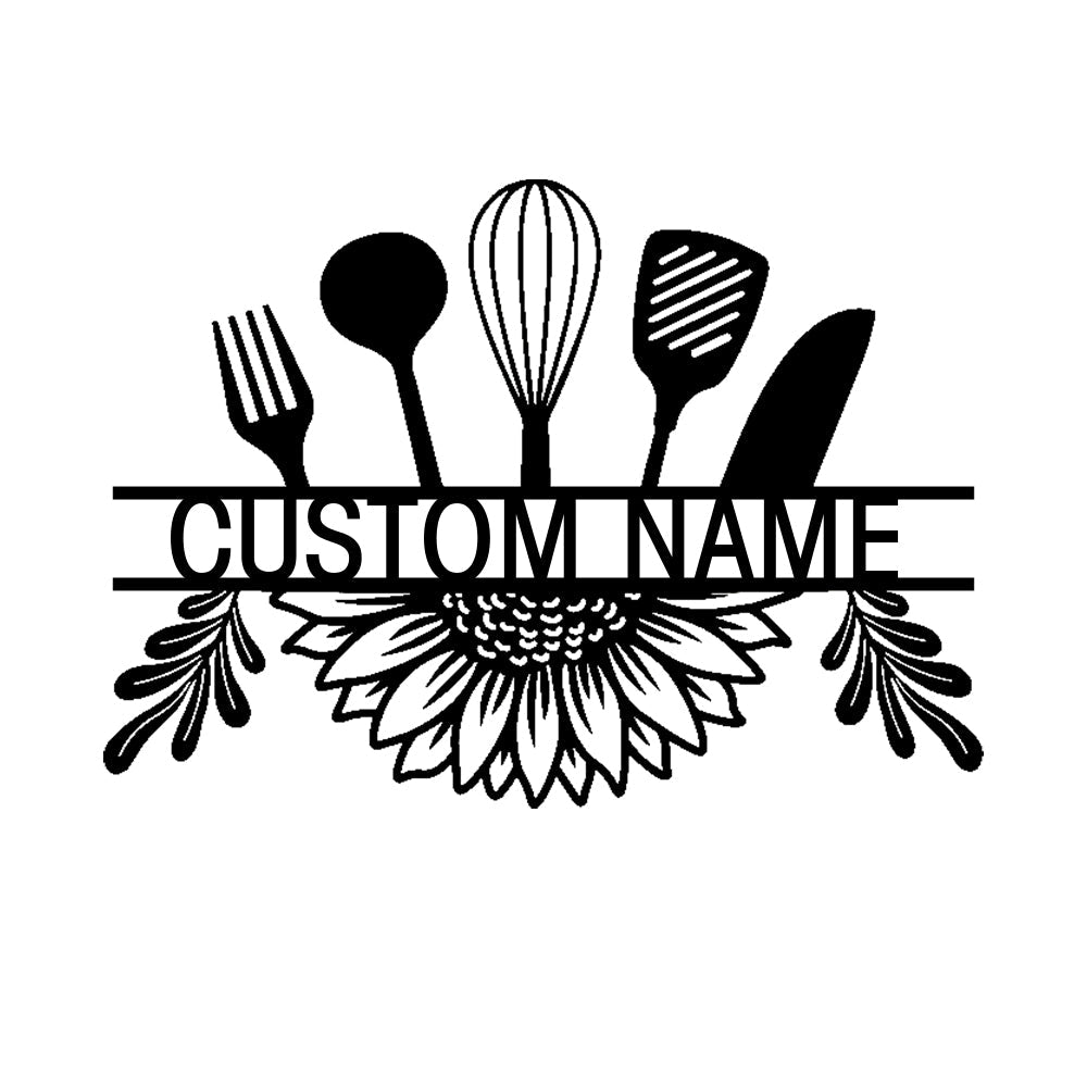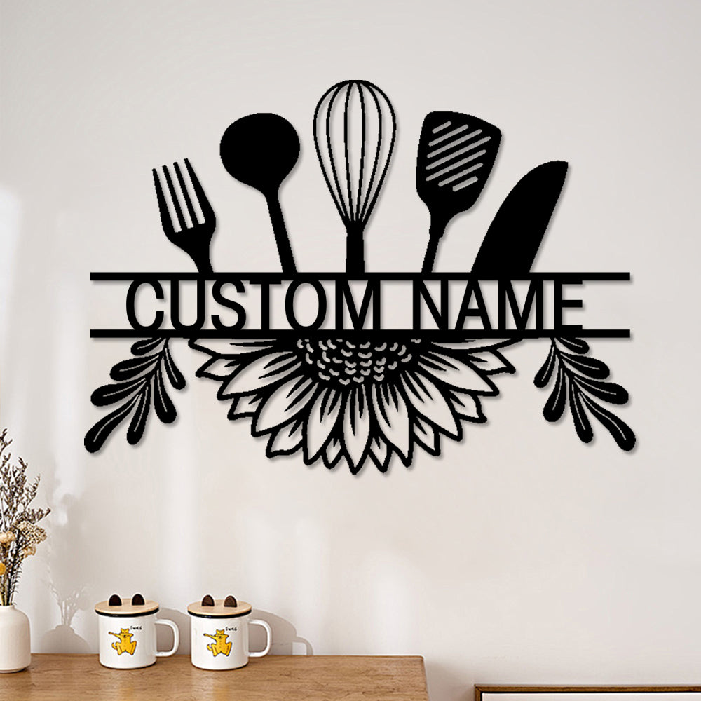 Individuelle Name Küche mit Messer und Gabel Metall Wanddekoration