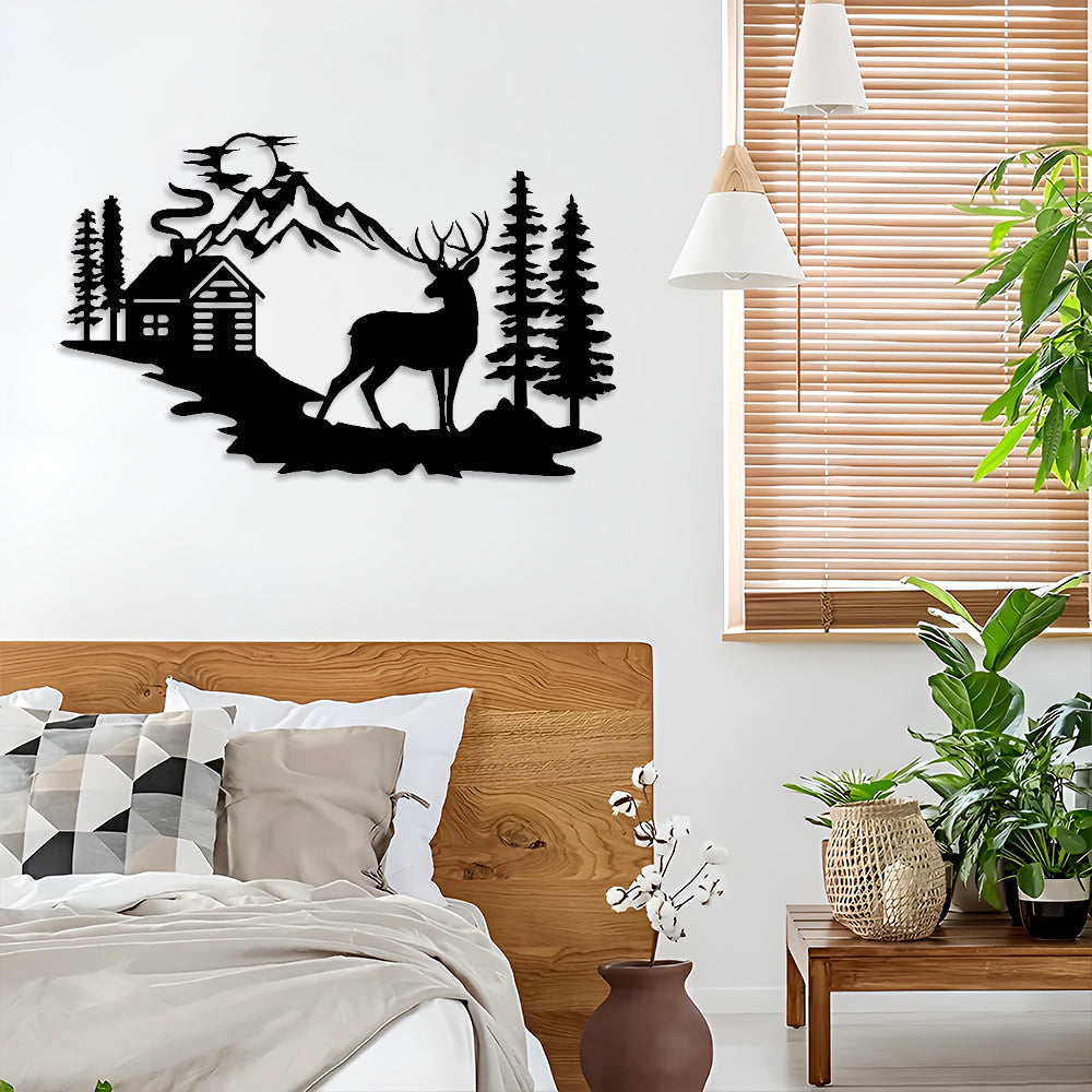 Kleines Haus und Elch Metall Wandkunst Dekoration