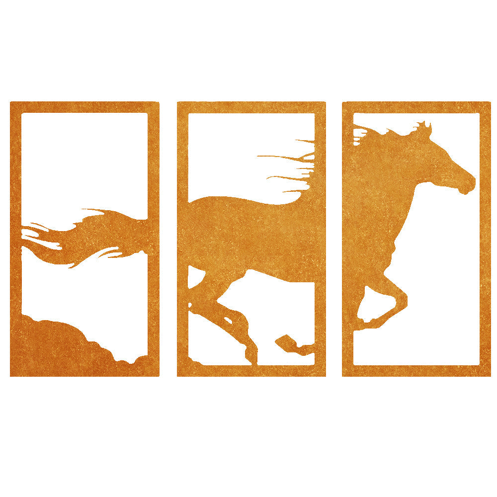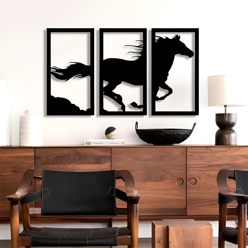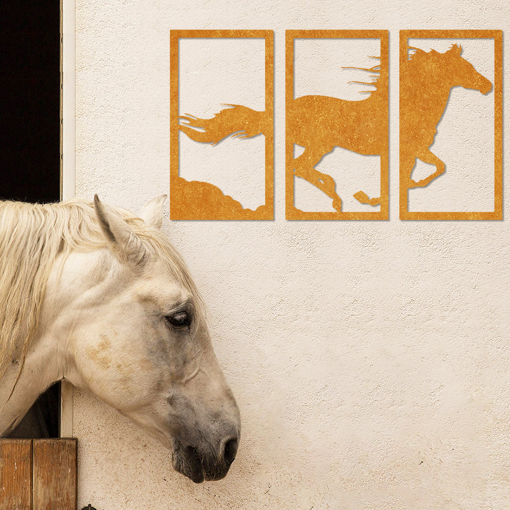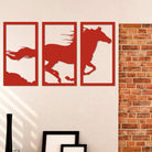 Laufendes Pferd Dreiteilige Wanddekoration aus Metall