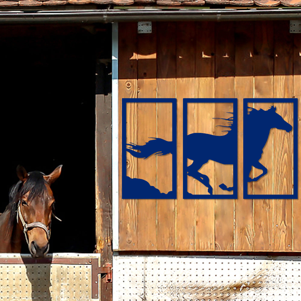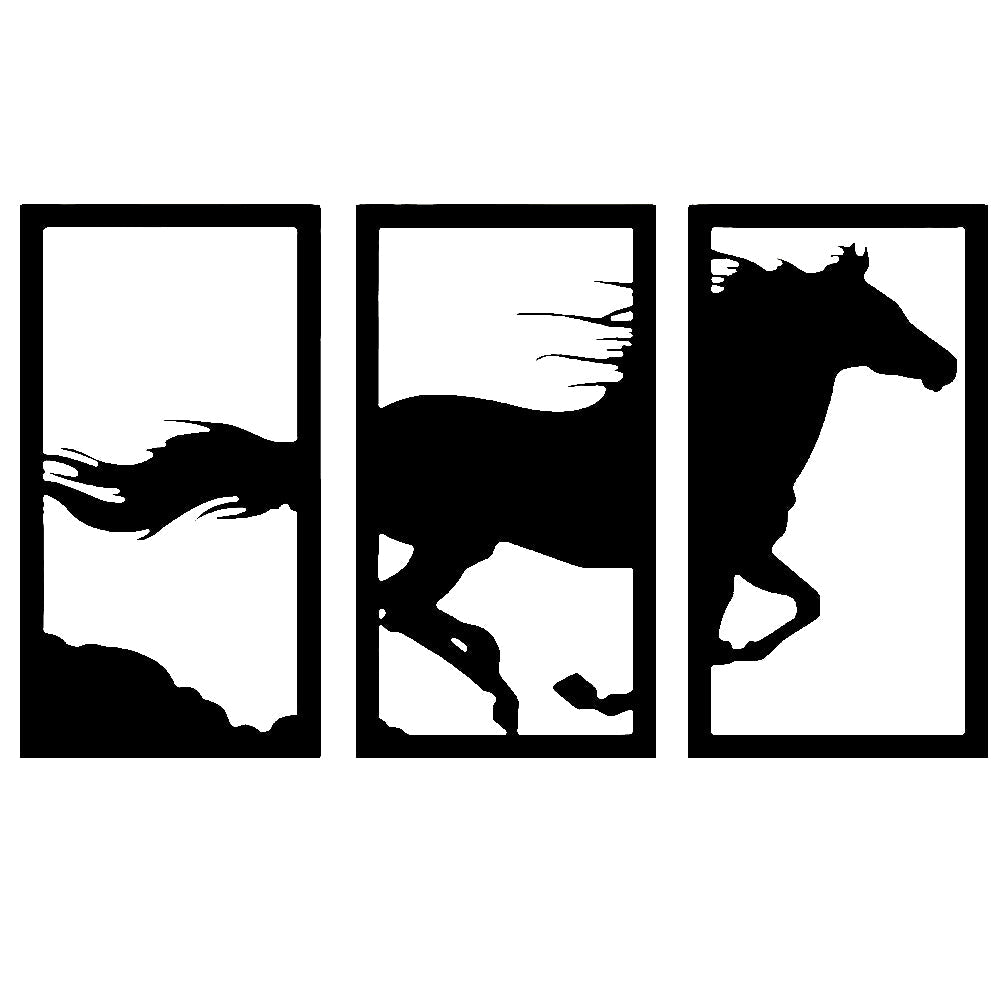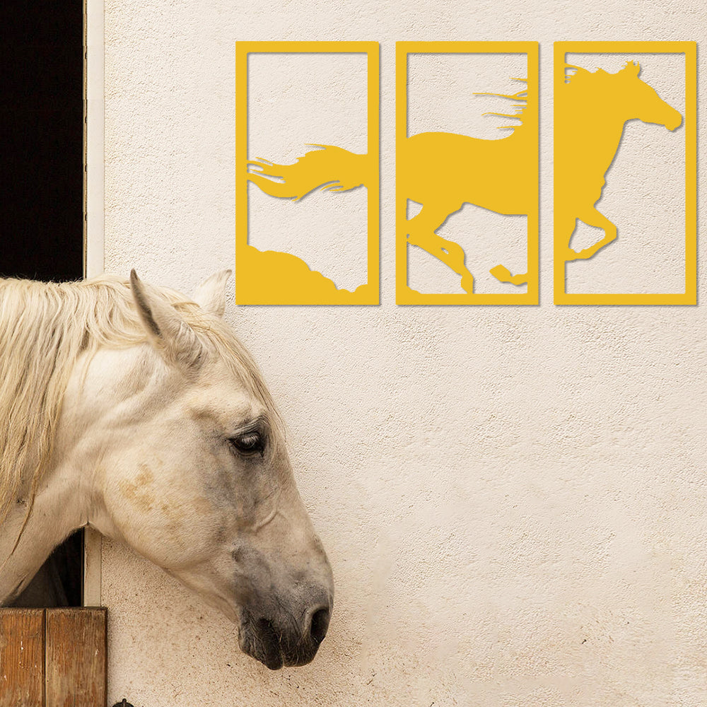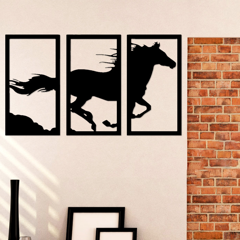Laufendes Pferd Dreiteilige Wanddekoration aus Metall