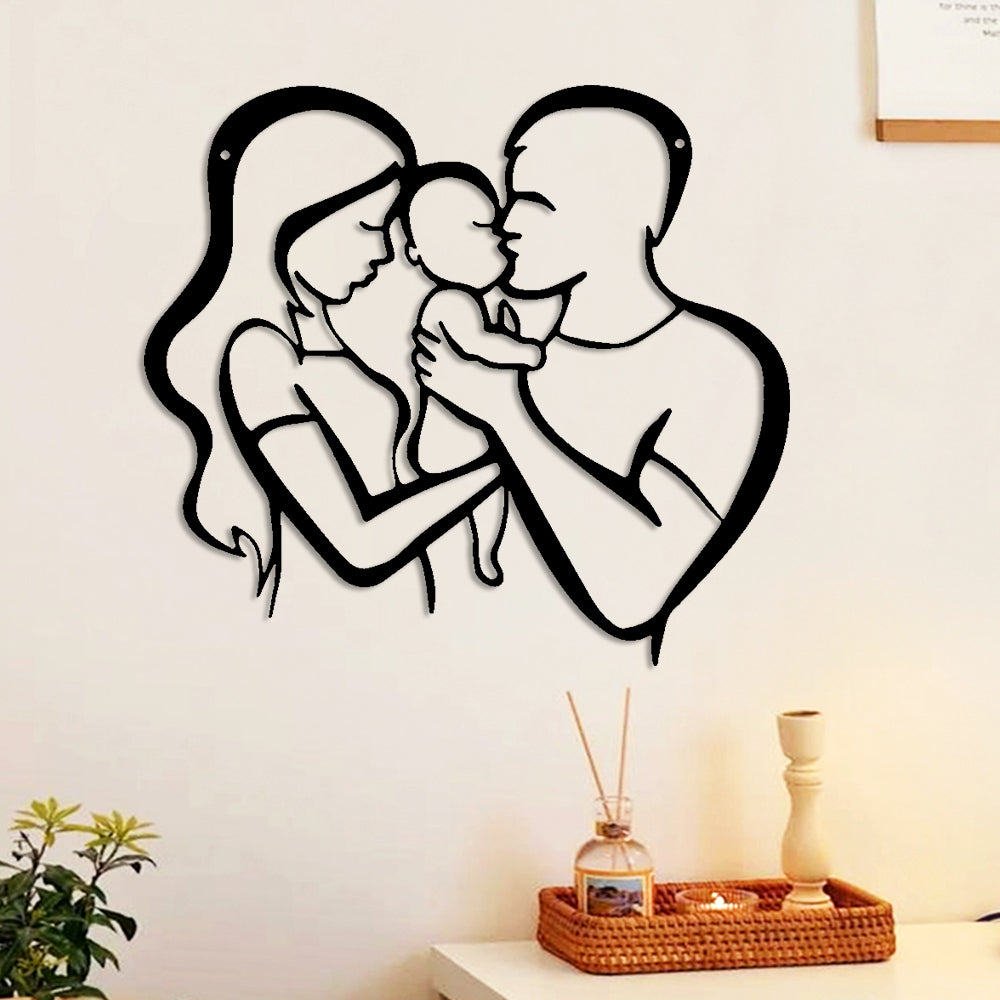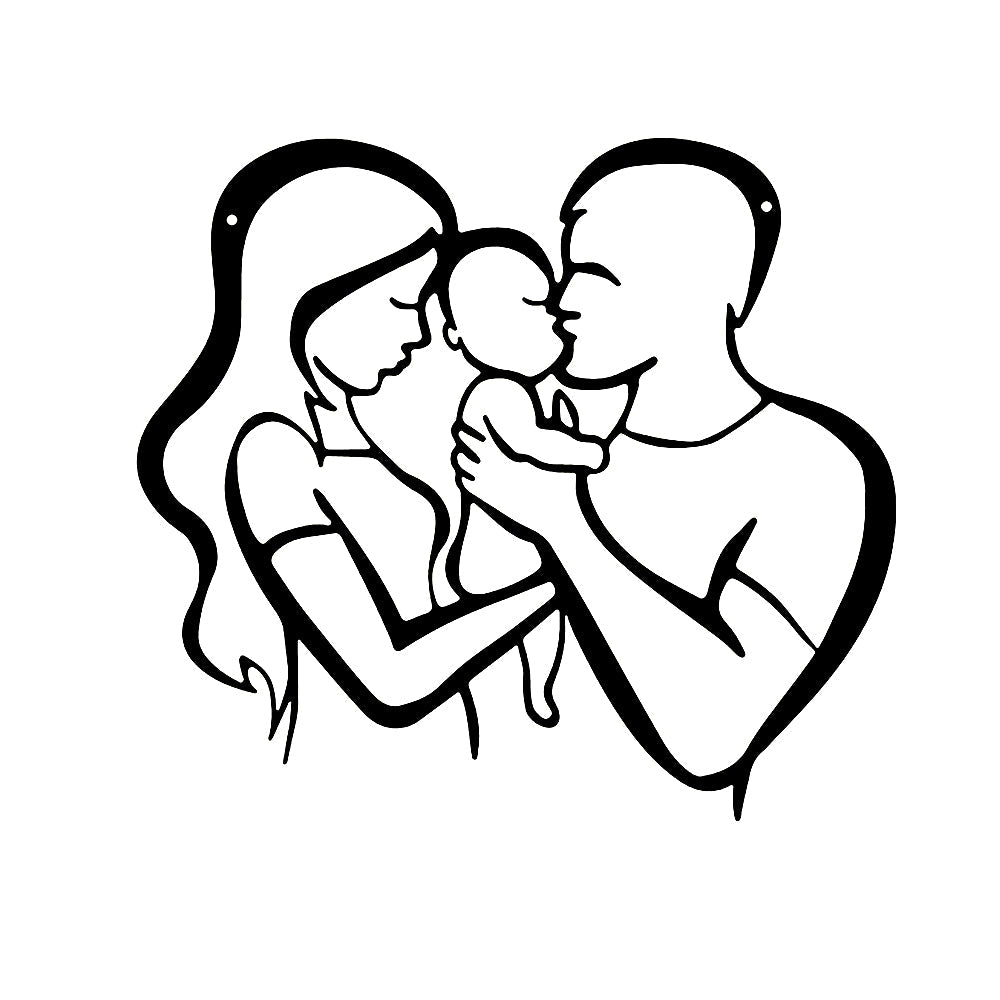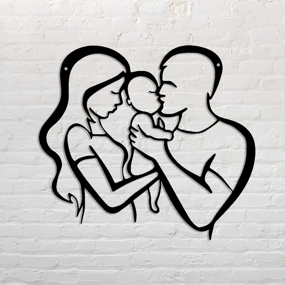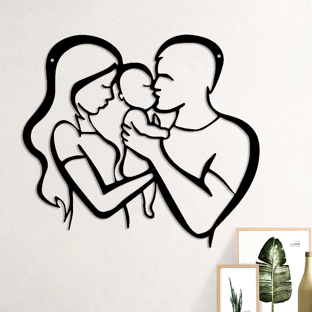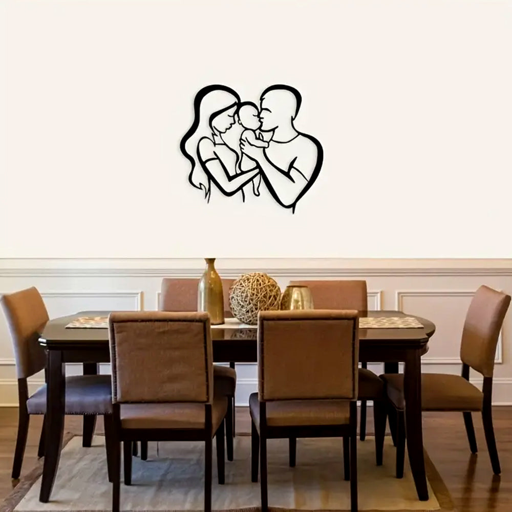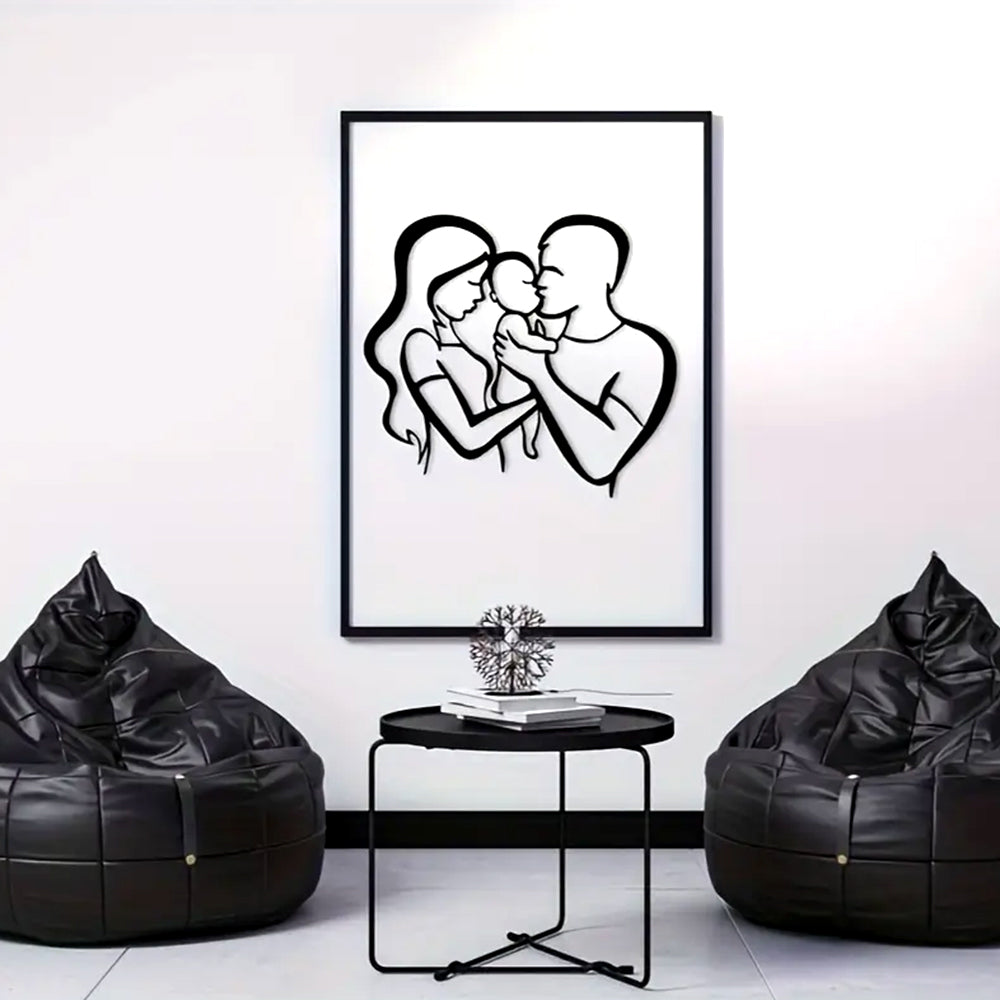 Minimalistische Strichzeichnung von Mutter sowie Vater und Kindern Metall Wanddekoration