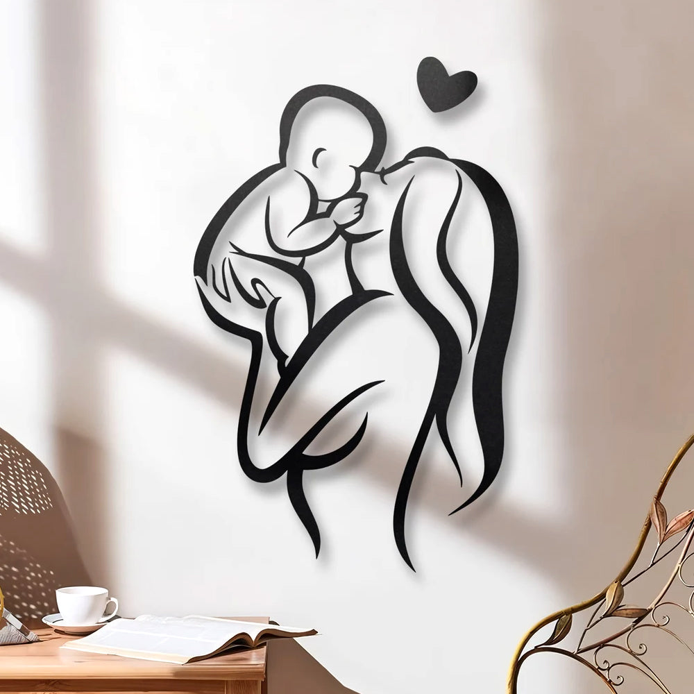 Mutter und Baby Wanddekoration aus Metall