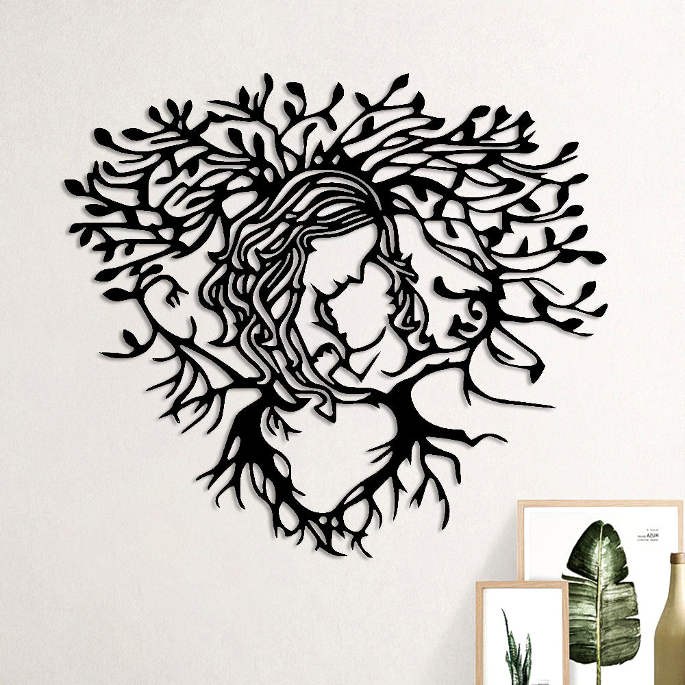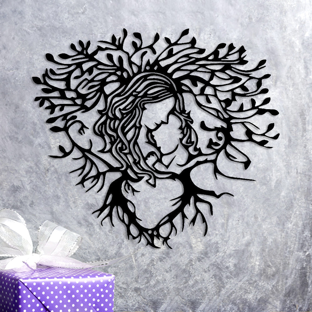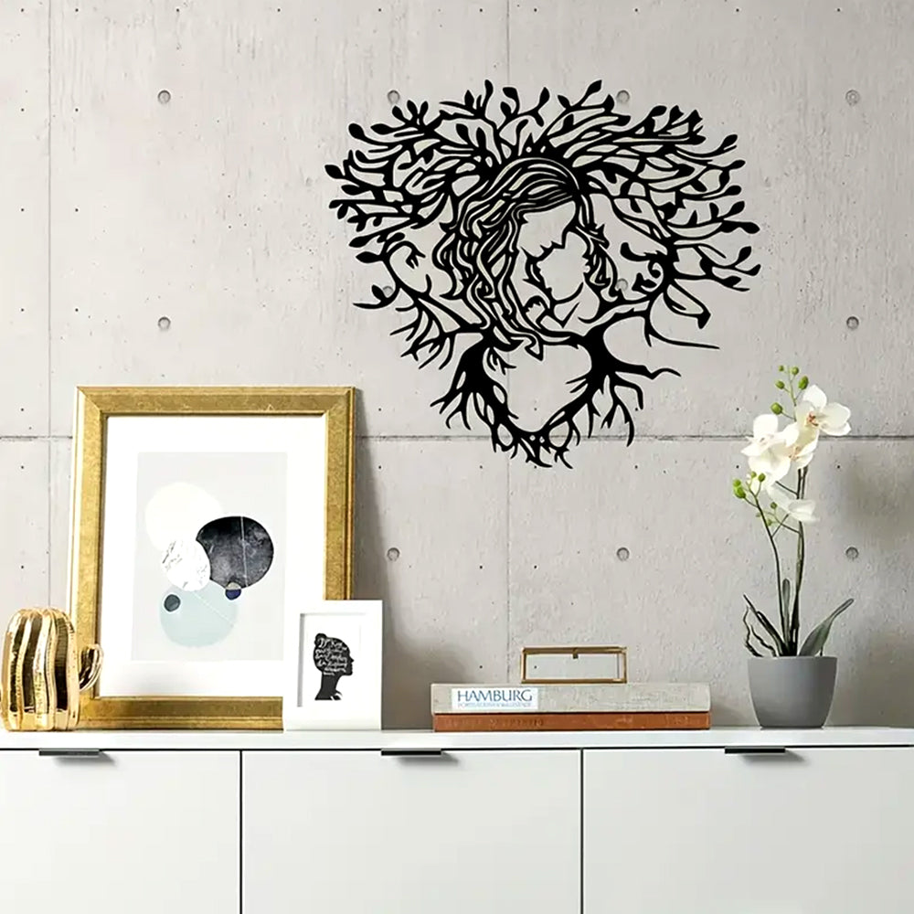 Mutter und Kind Herzförmiger Baum Metall Wandkunst