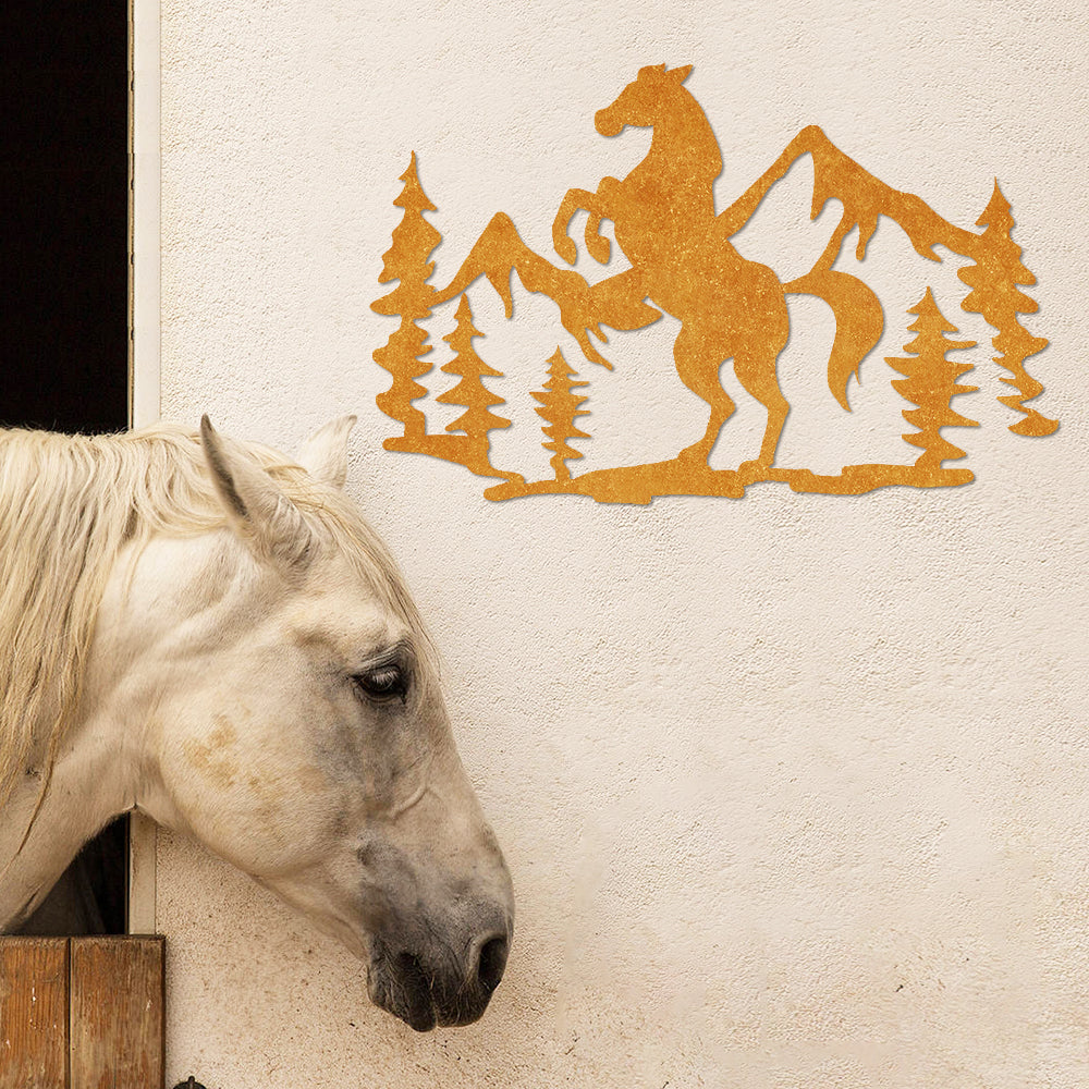 Pferd und Berg Kunst Metall Wanddekoration