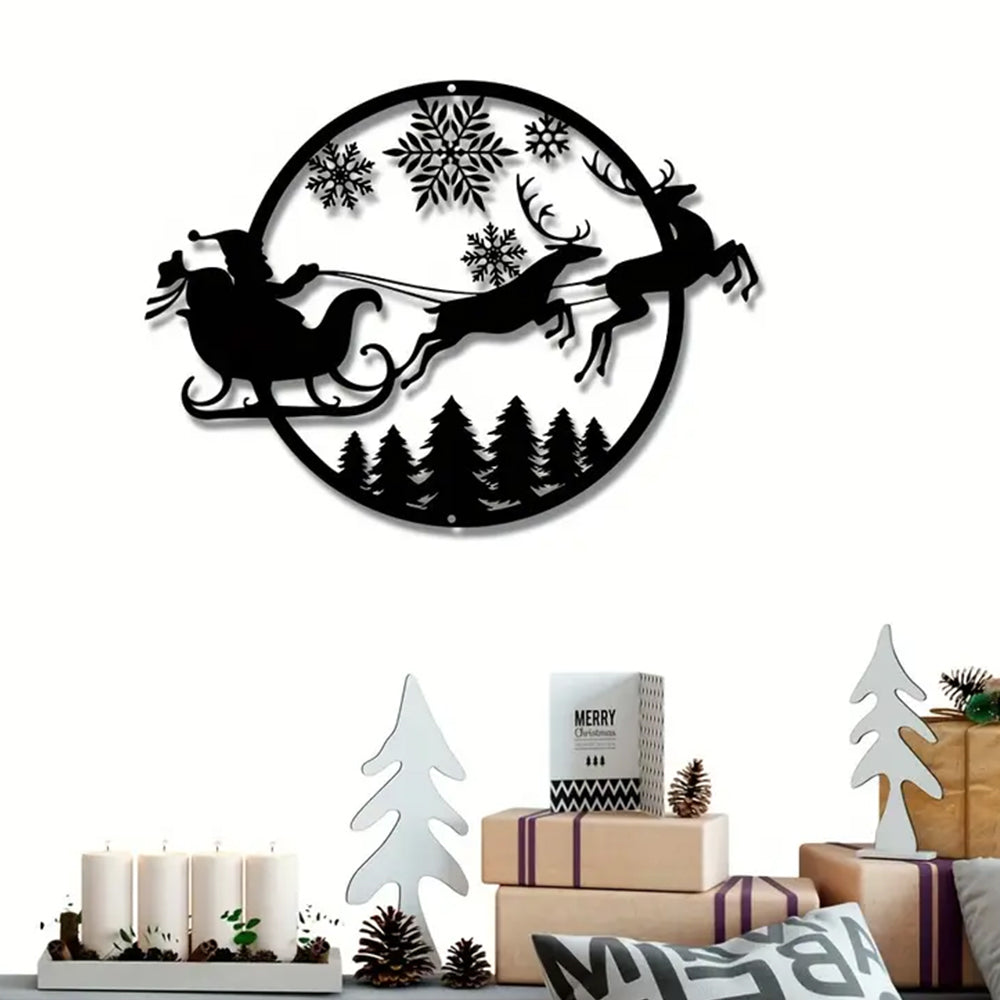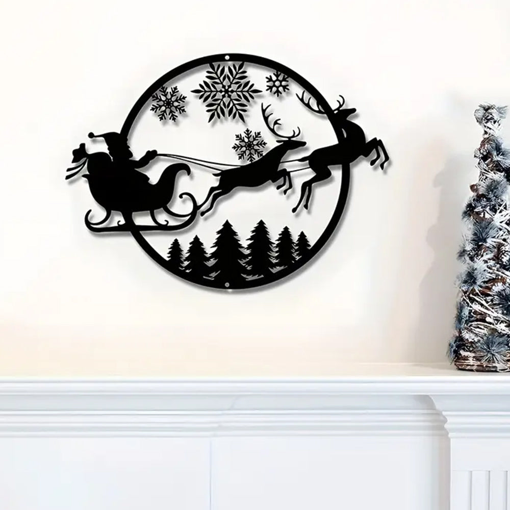 Weihnachtsmann Schlitten fahren Metall Wunddekoration