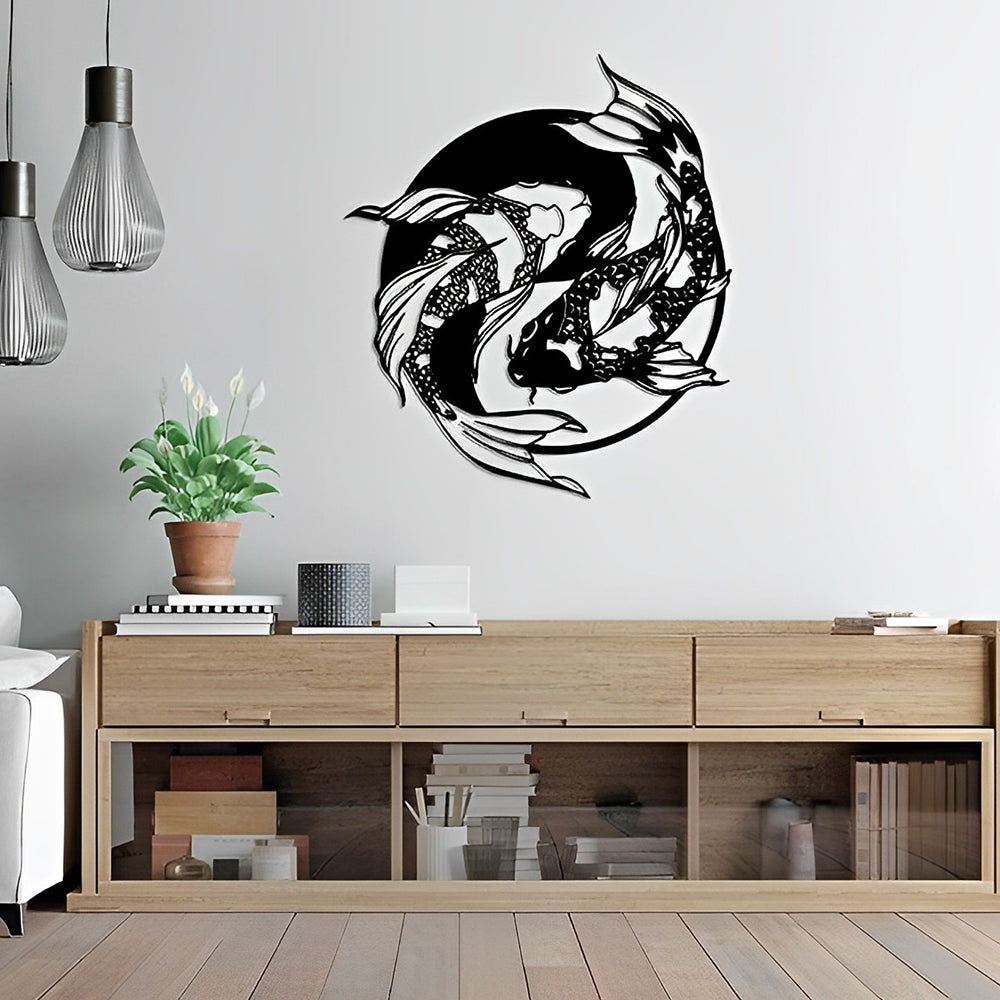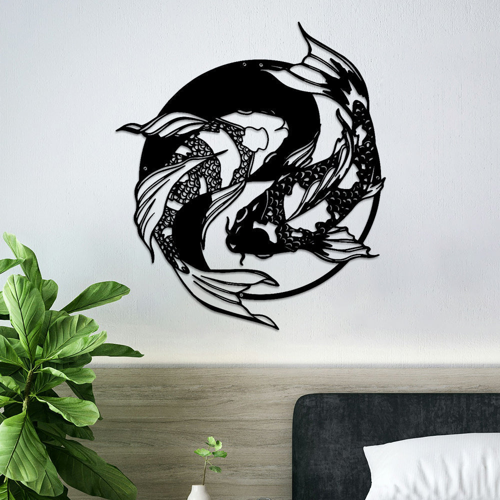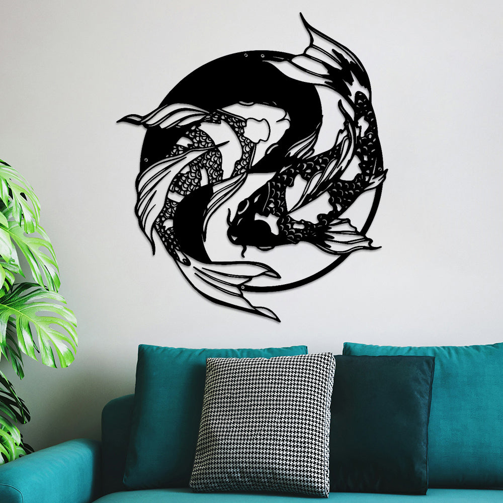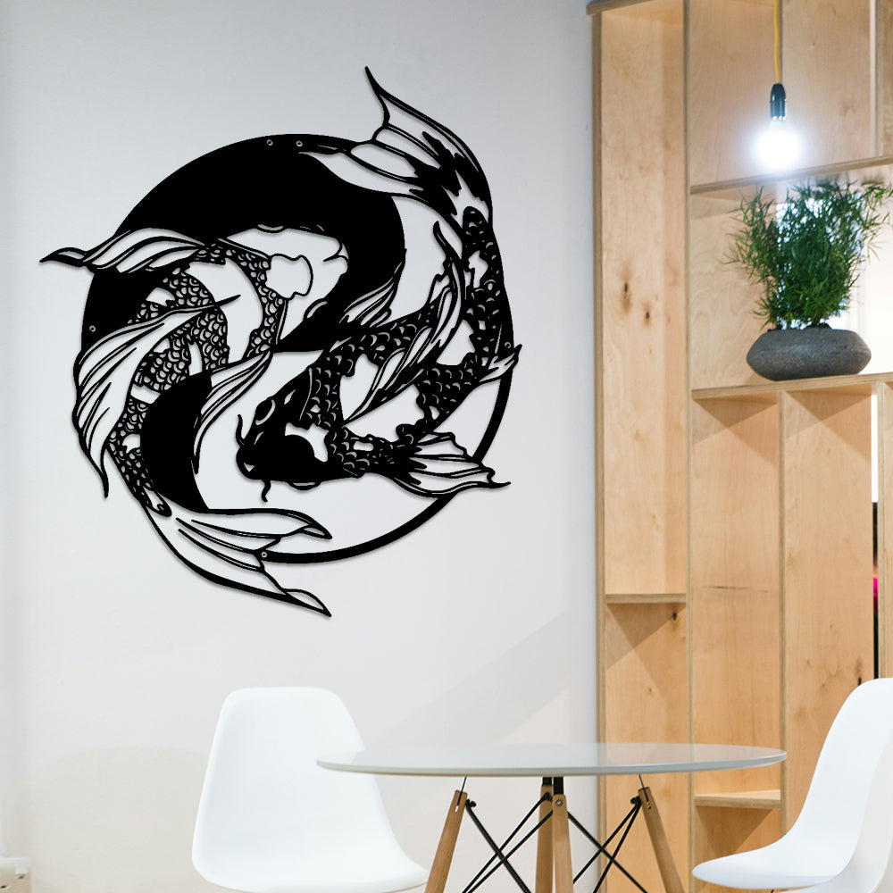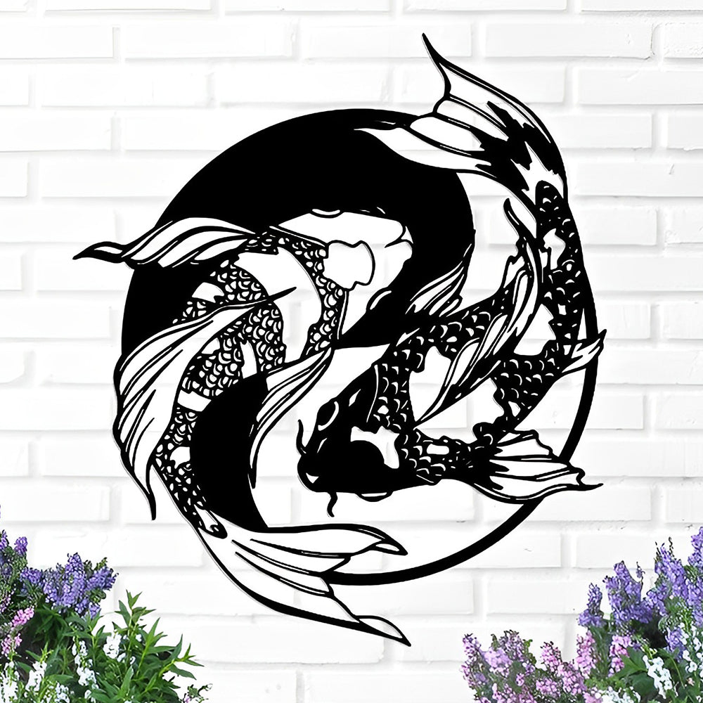 Yin Yang Tai Chi Koi Karpfen Metall Wandkunst METAL0555