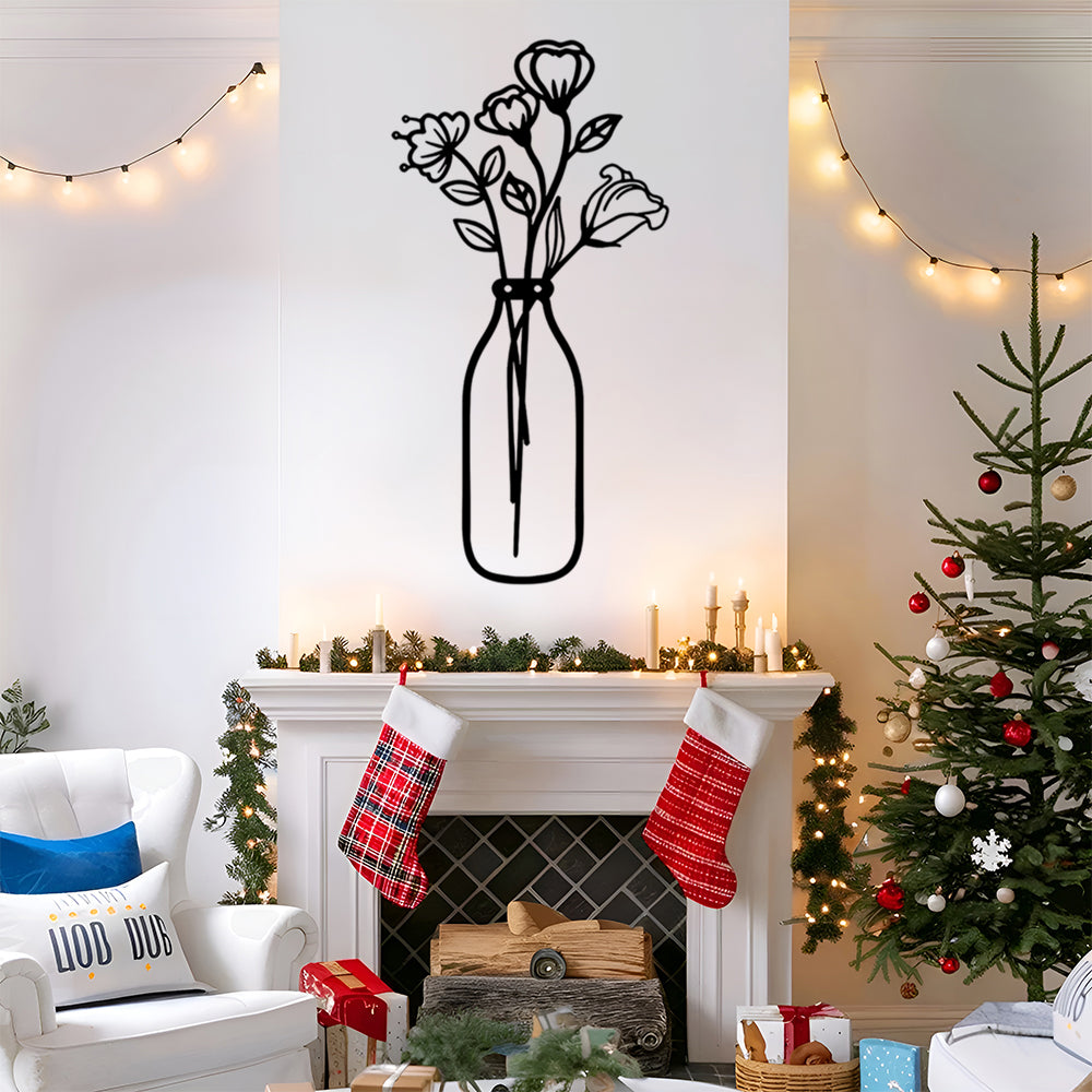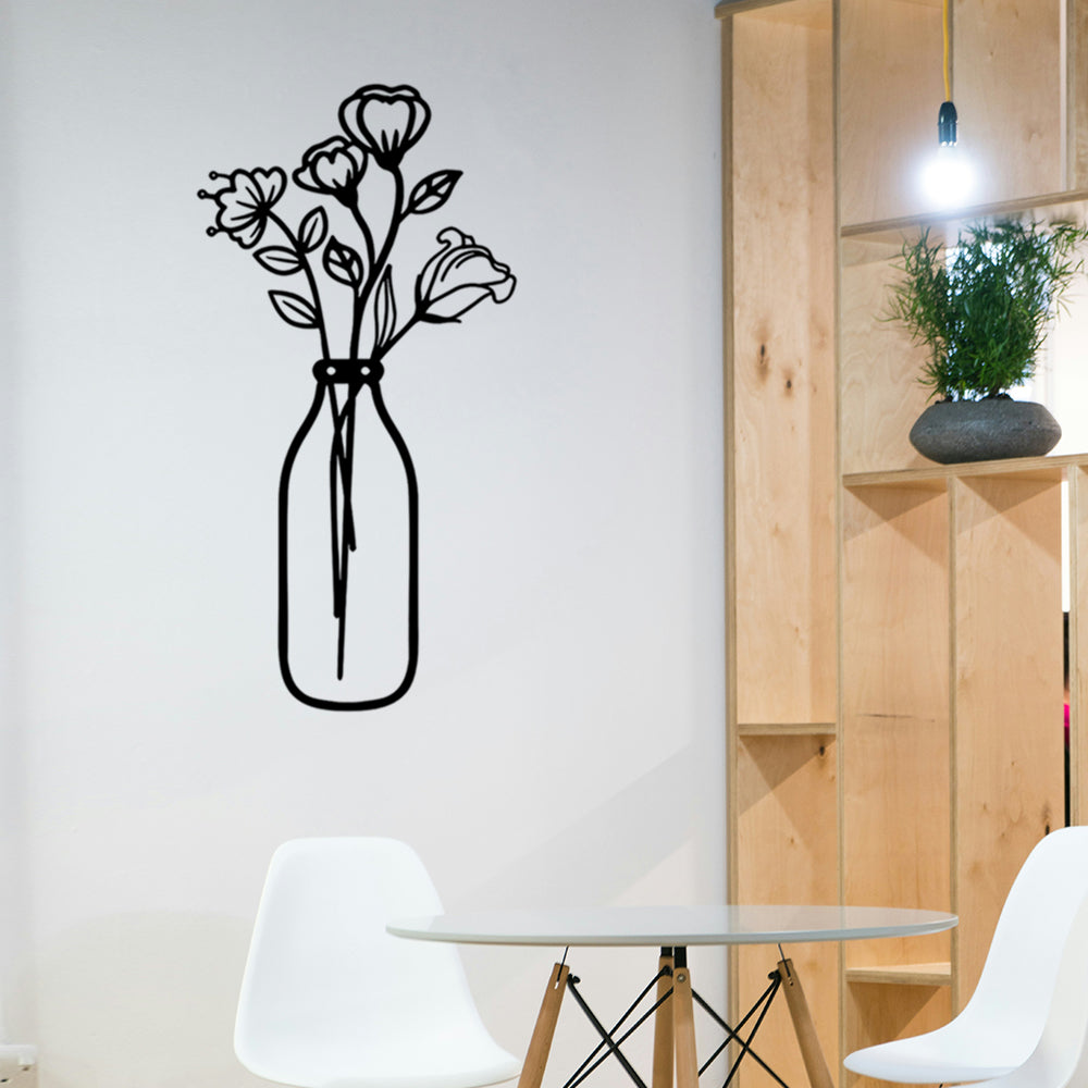 Einfache Blumenvase Silhouette Metall Wandkunst