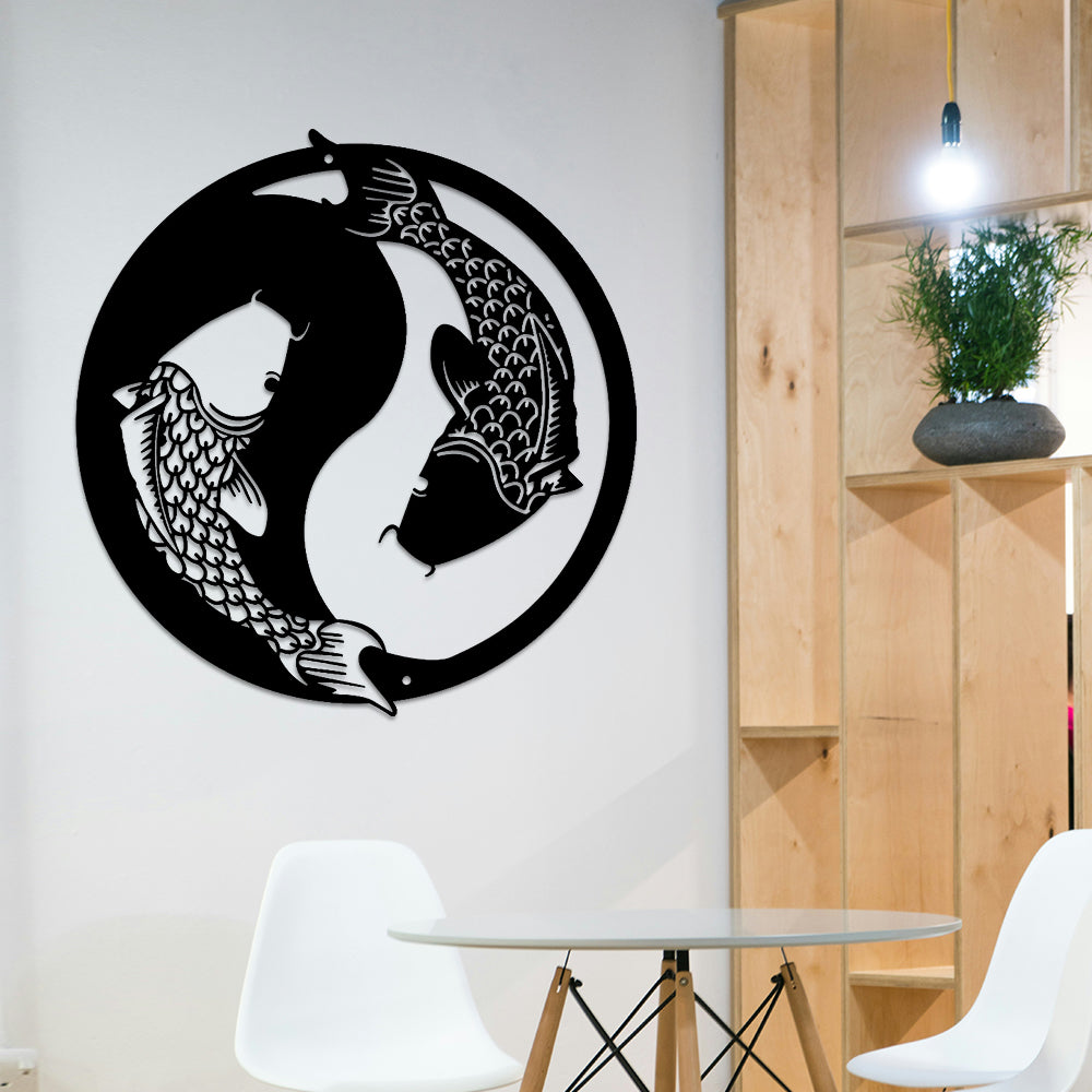 Yin Yang Tai Chi Koi Karpfen Metall Wandkunst METAL0554