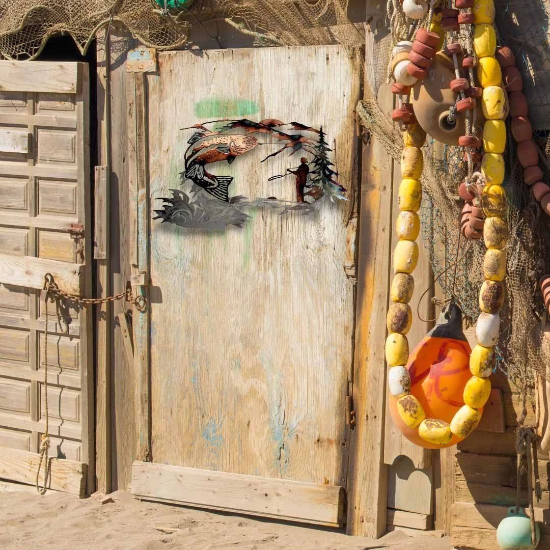 Forelle und Angler Metall Wandkunst