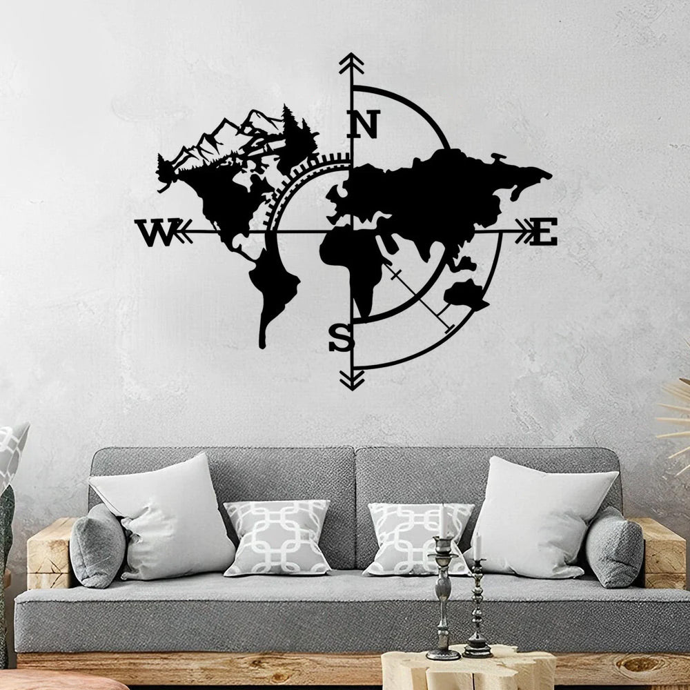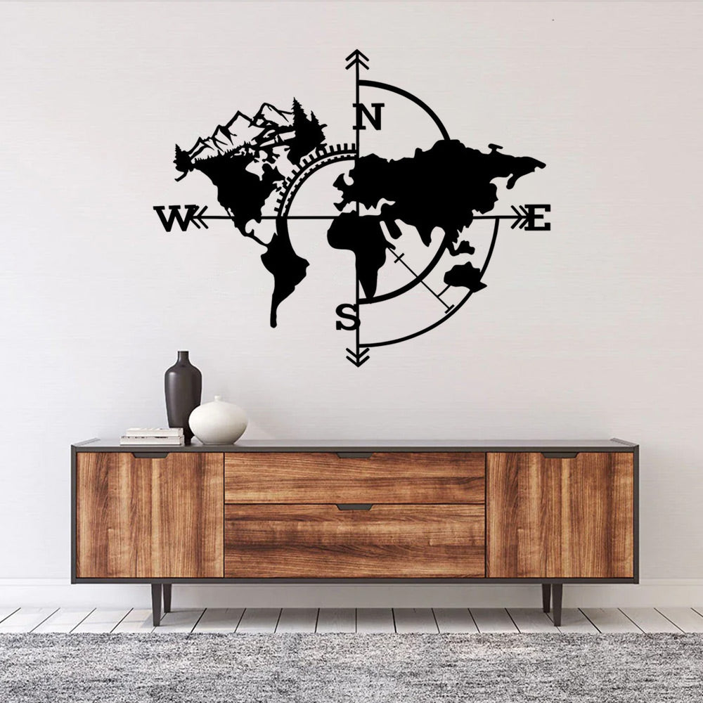 Karte und Kompass Metall Wandkunst