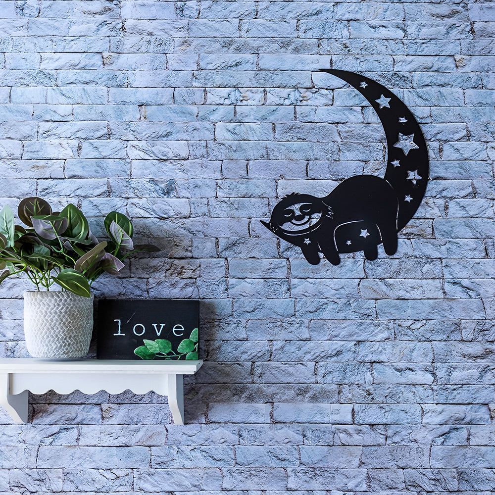 Faultier auf Mond liegend Metall Wandkunst