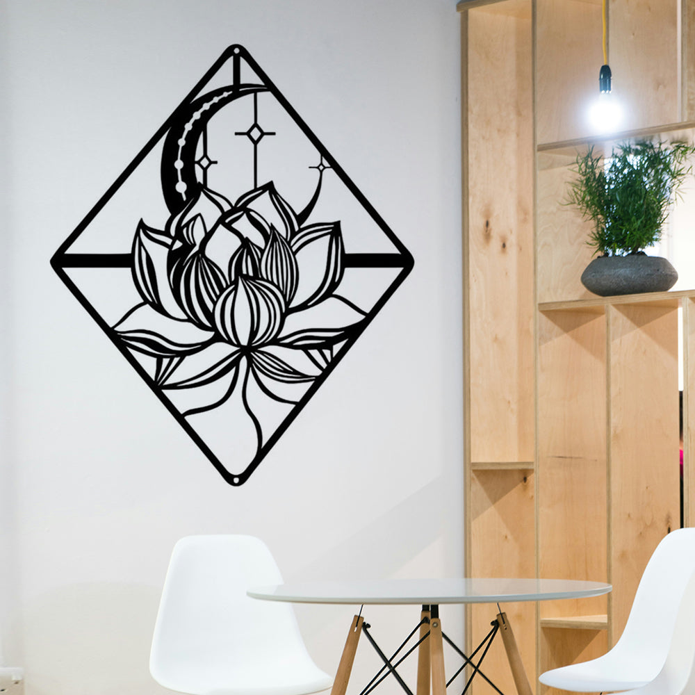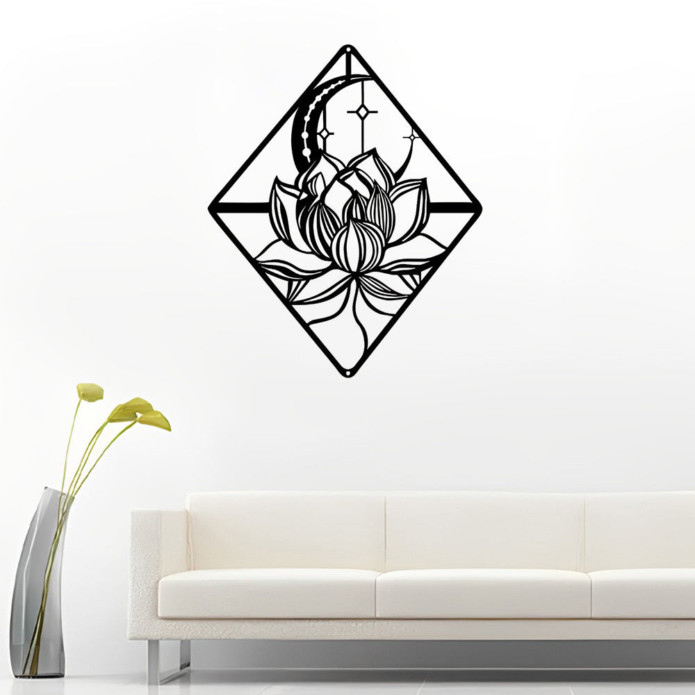 Rhombus Lotus Mond Metall Wandkunst