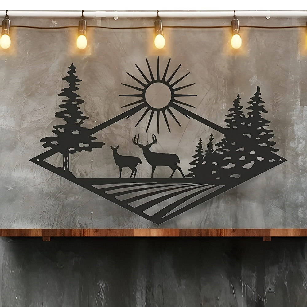 Morgengrauen Hirschjagd Metall Wandkunst Dekoration