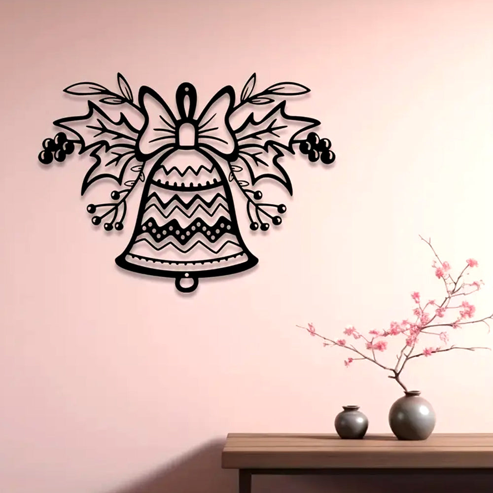 Weihnachten Glocke mit Bogen und Blättern Metall Wunddekoration