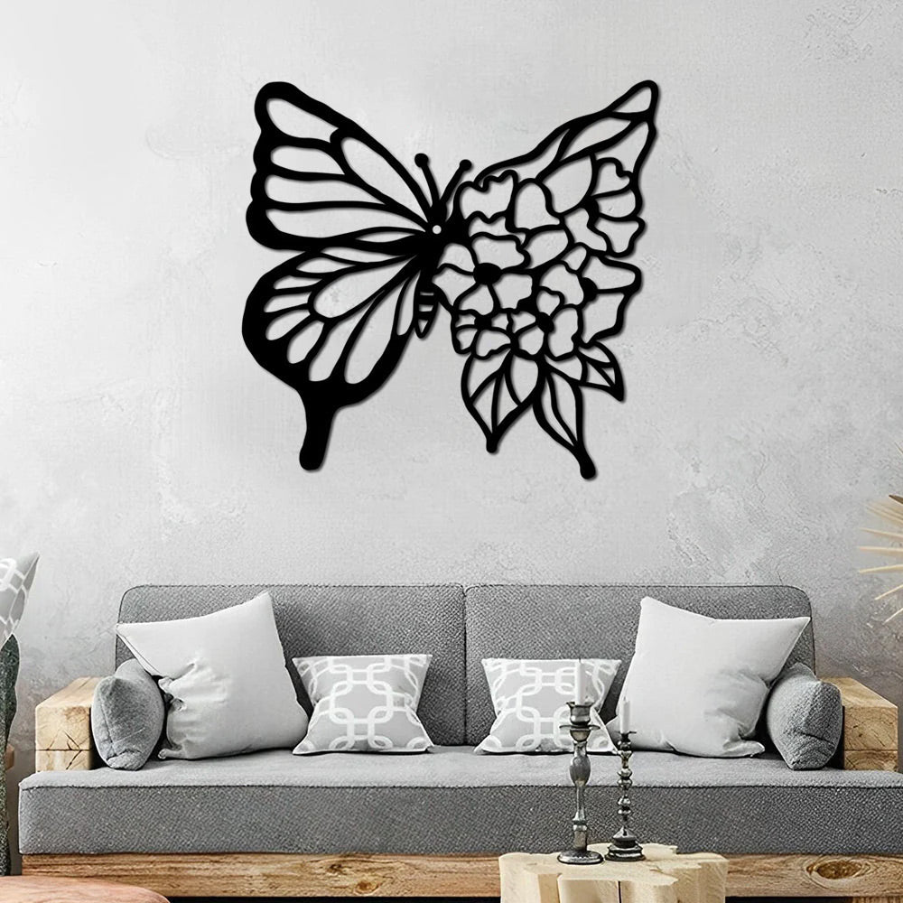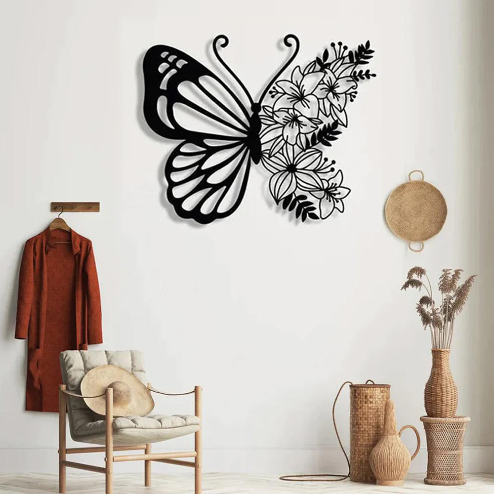 Blume und Schmetterling Metall Wanddekoration