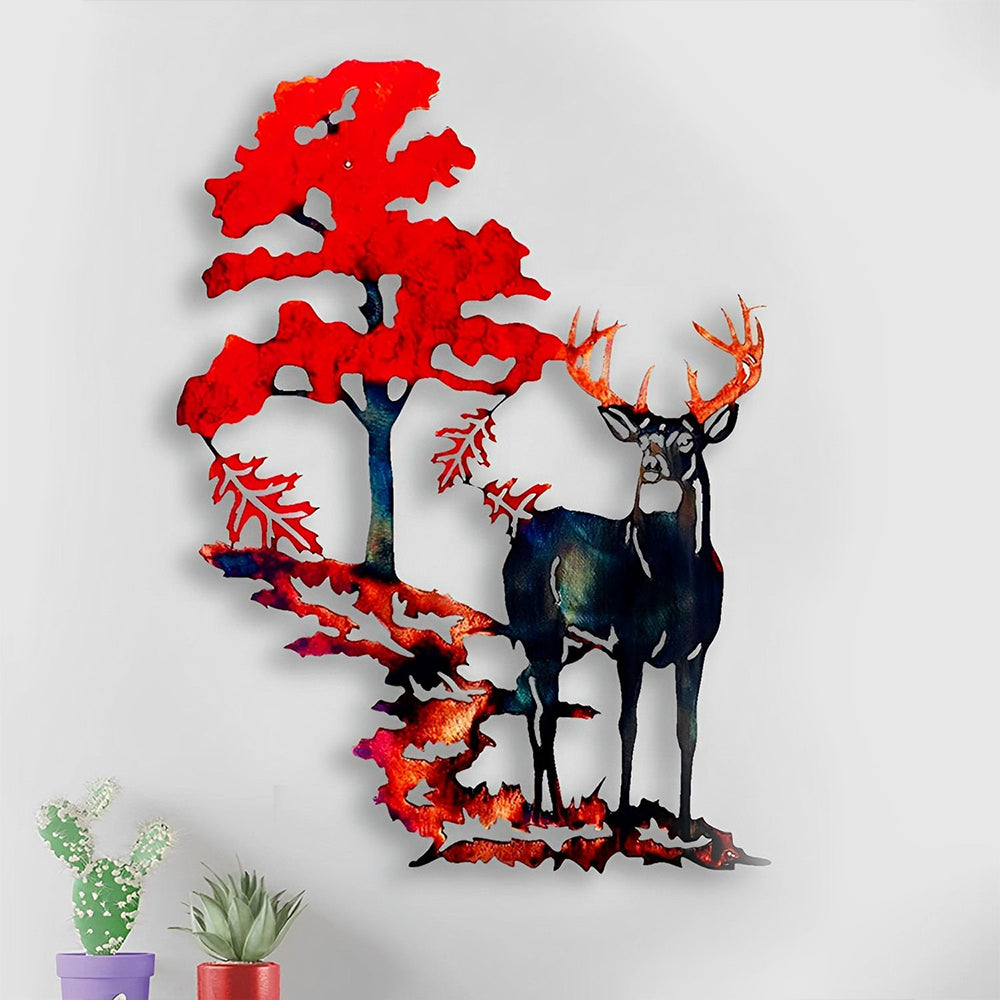 Elch und Rotbaum Metall Wandkunst