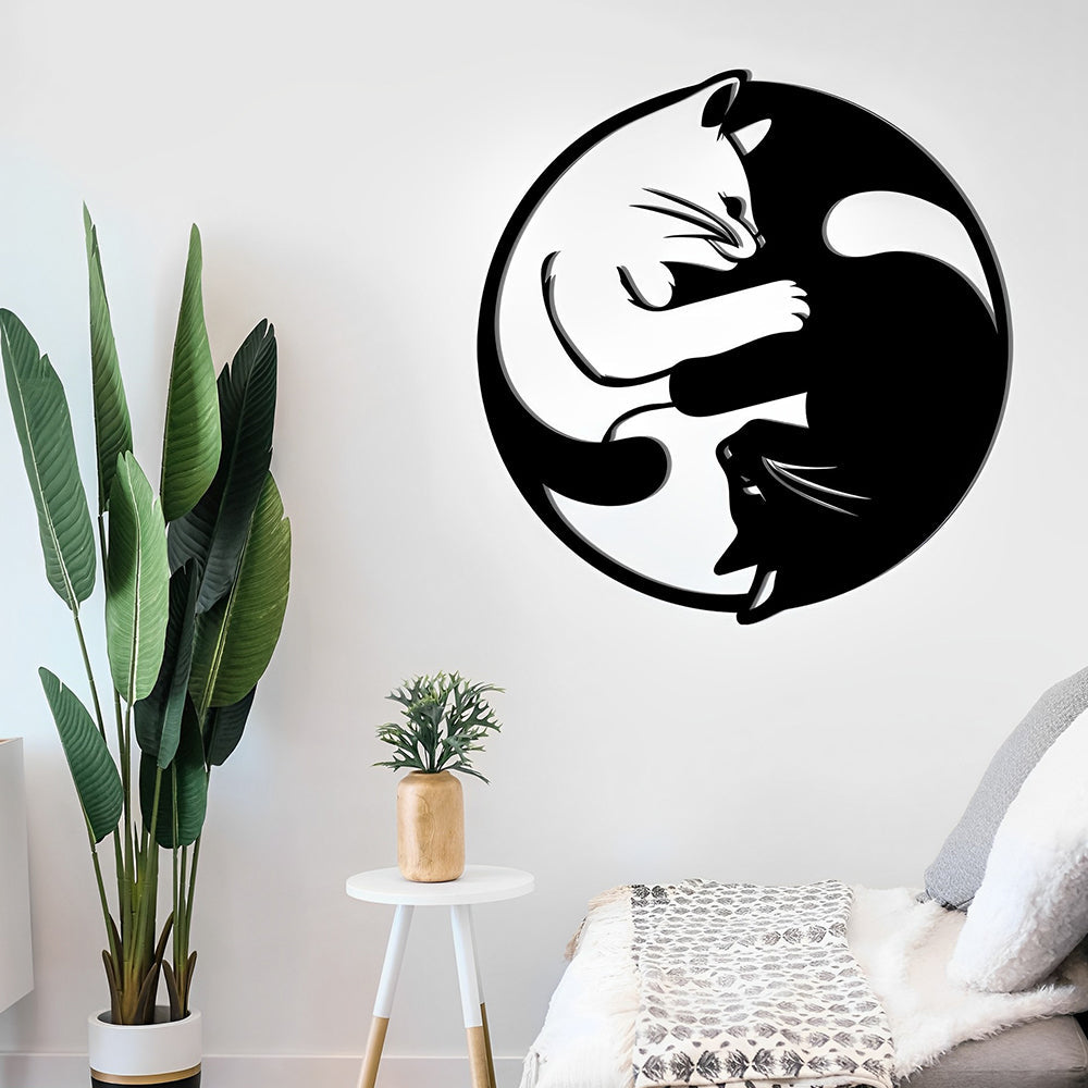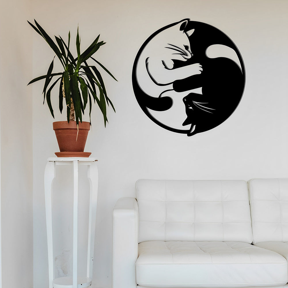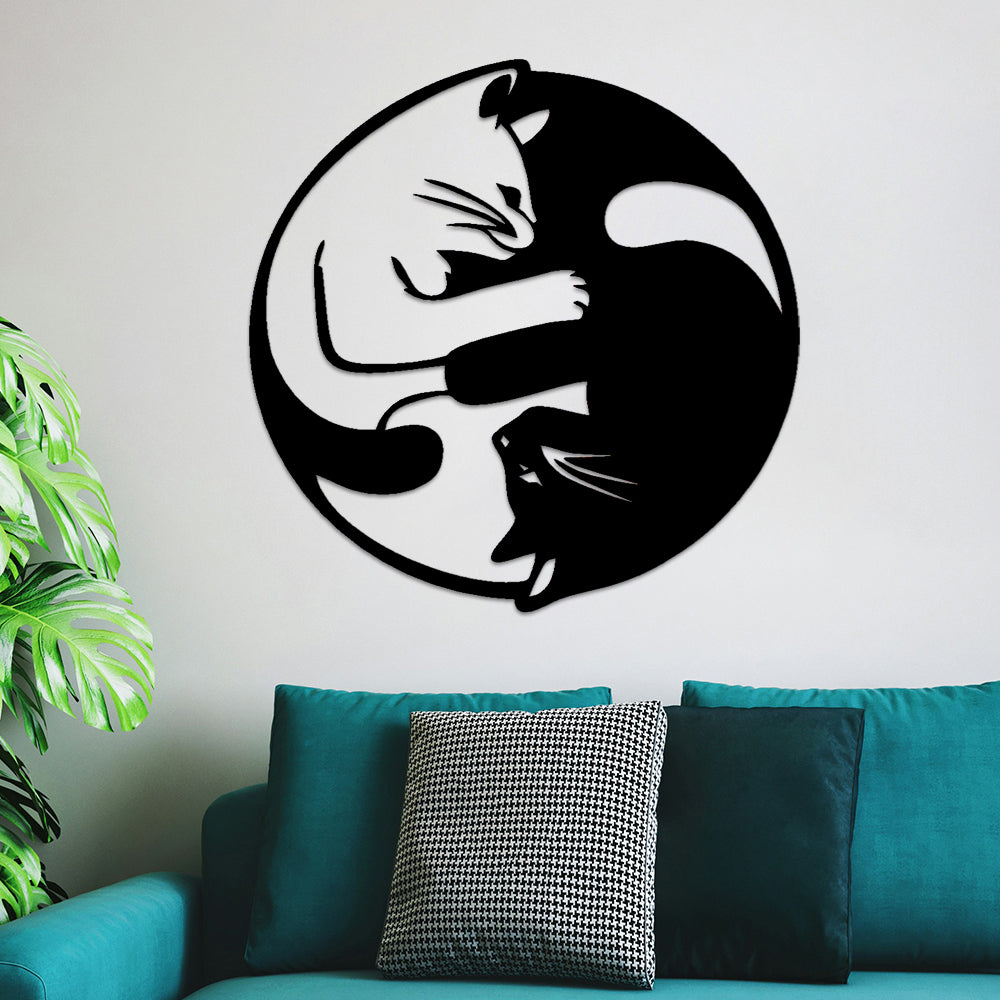 Yin Yang Tai Chi Katzen Metall Wandkunst