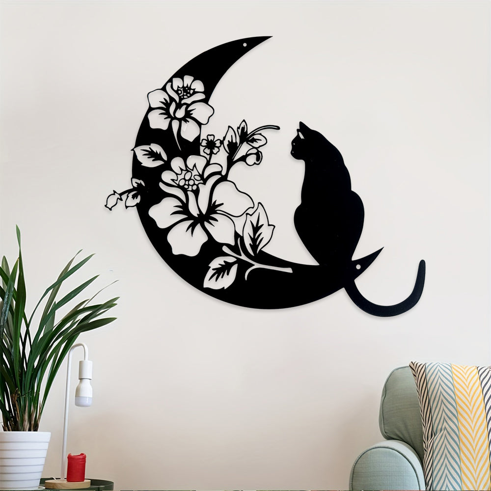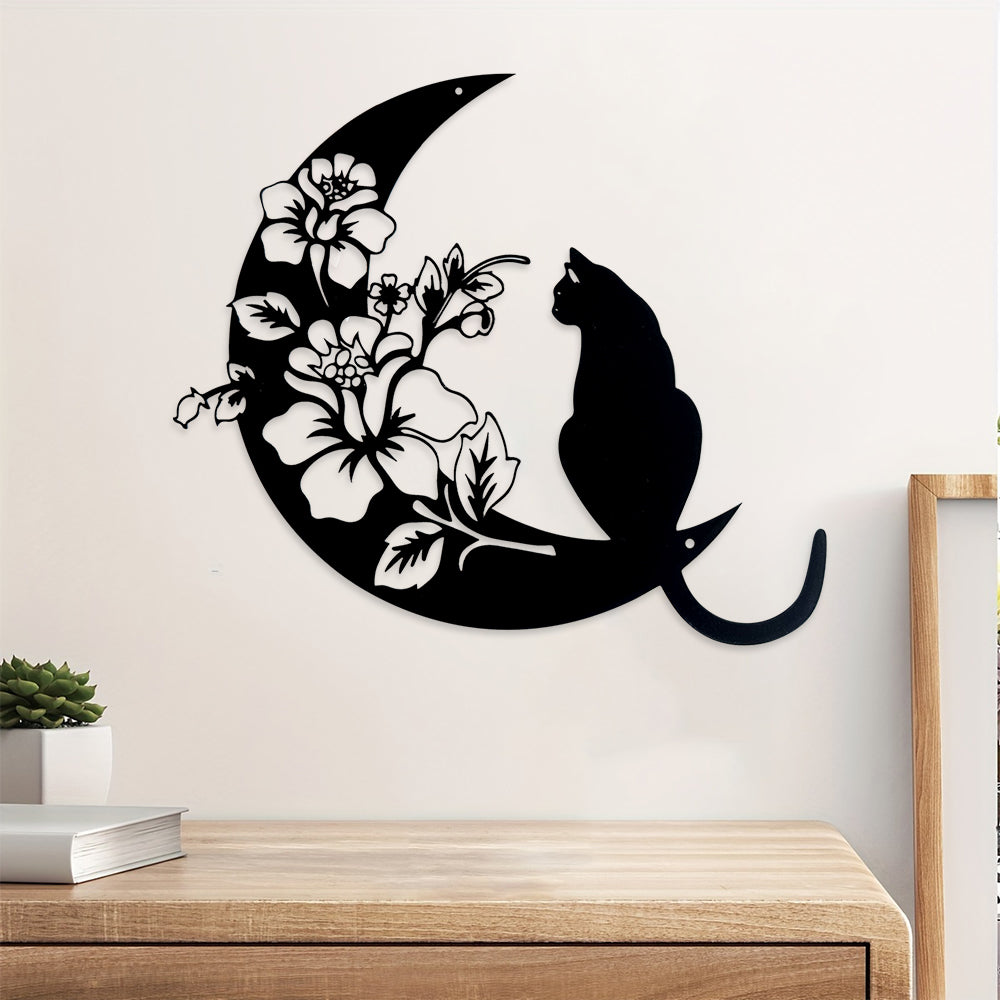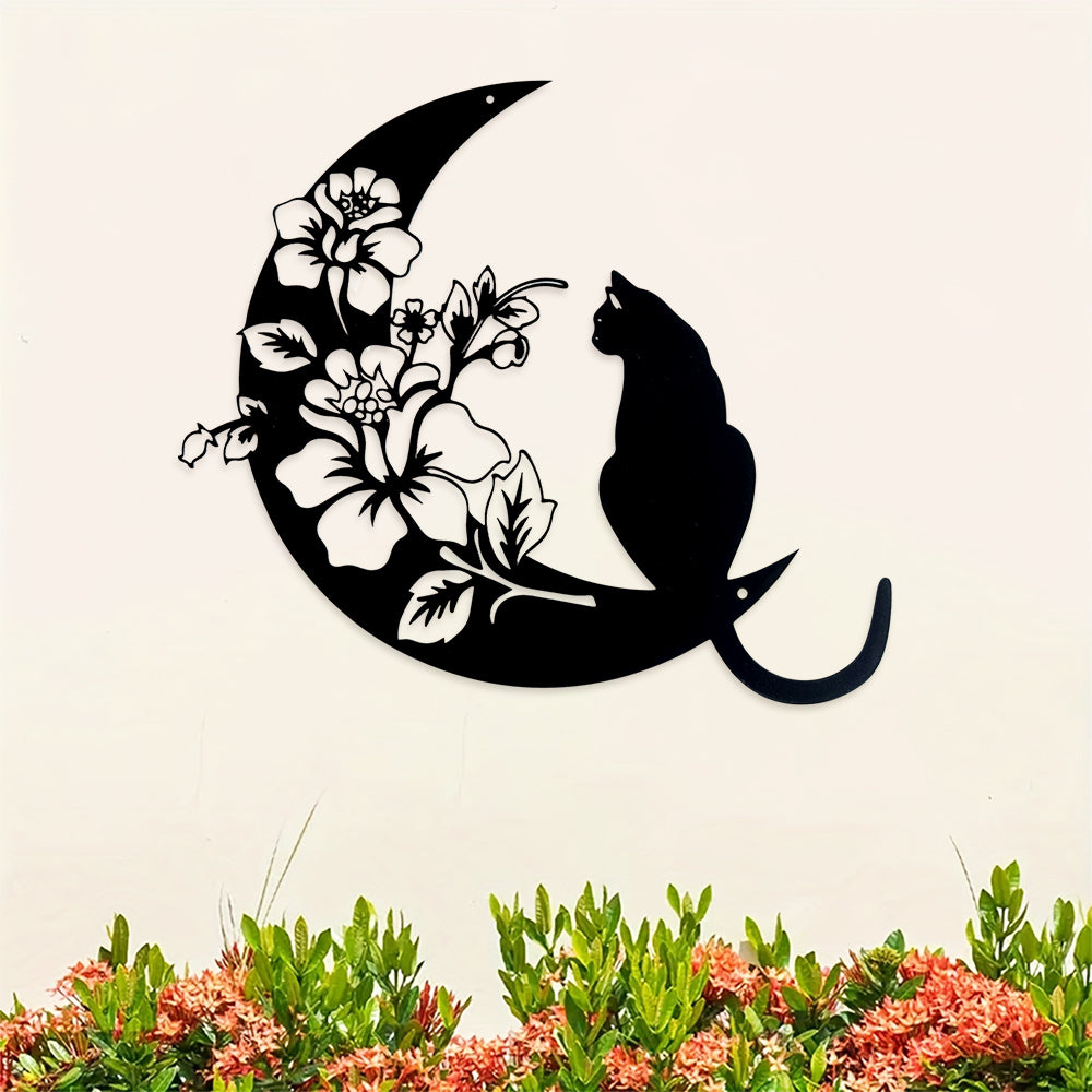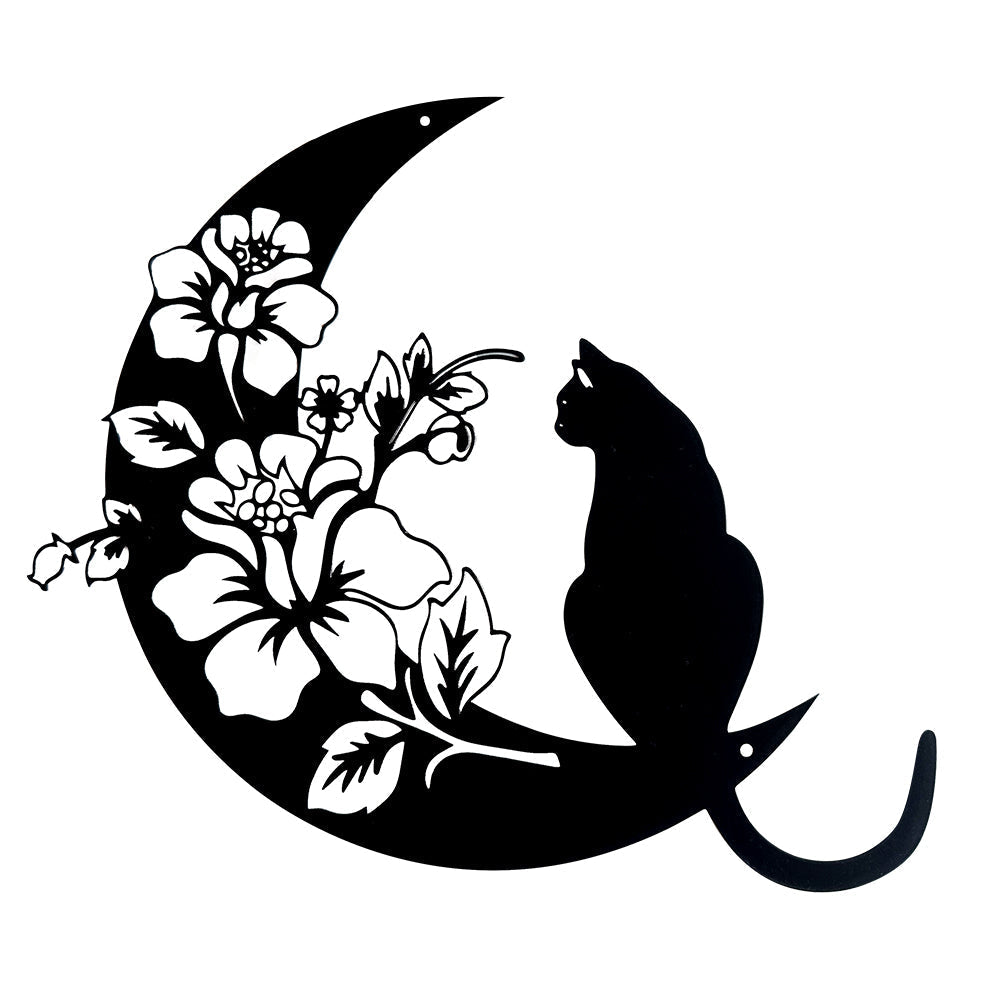 Halbmond Schwarze Katze Metall Wandkunst