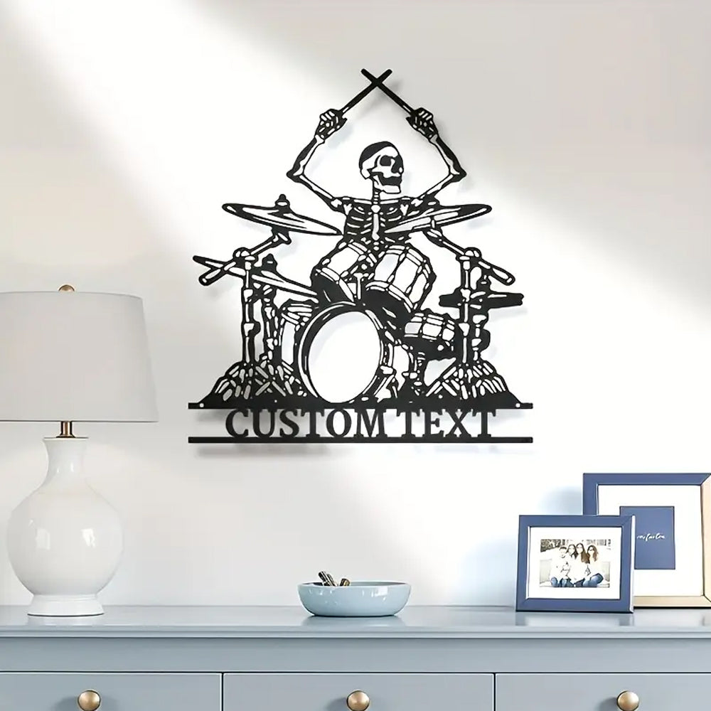 Individuelle Schlagzeuger Skelett Schild Metall Wandkunst Dekoration