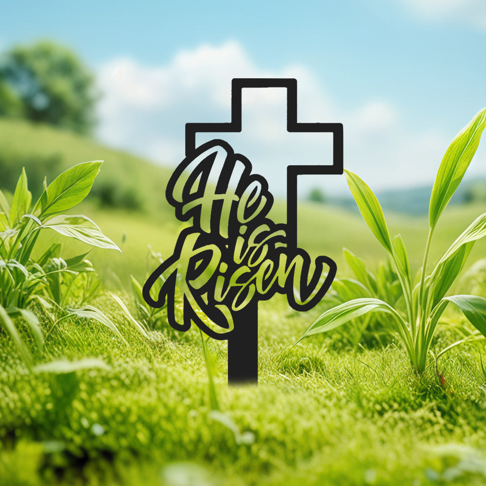Ostern Er ist auferstanden Kreuz Metall Schild Outdoor Hofdekoration