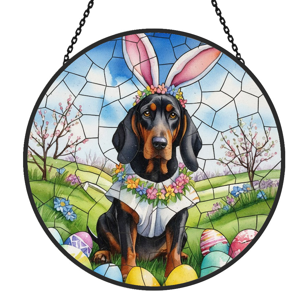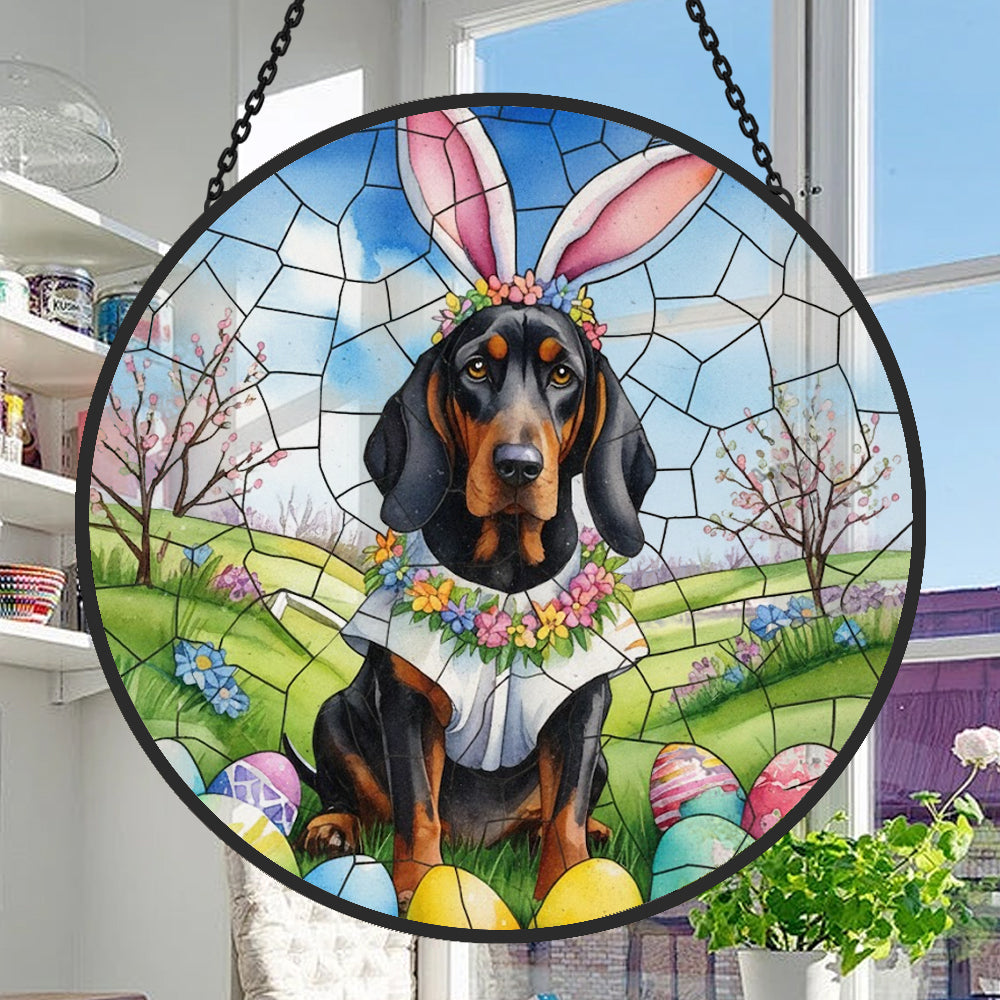 Schwarz-brauner Waschhund Buntglas Sonnenfänger - Fenster Hängedekoration